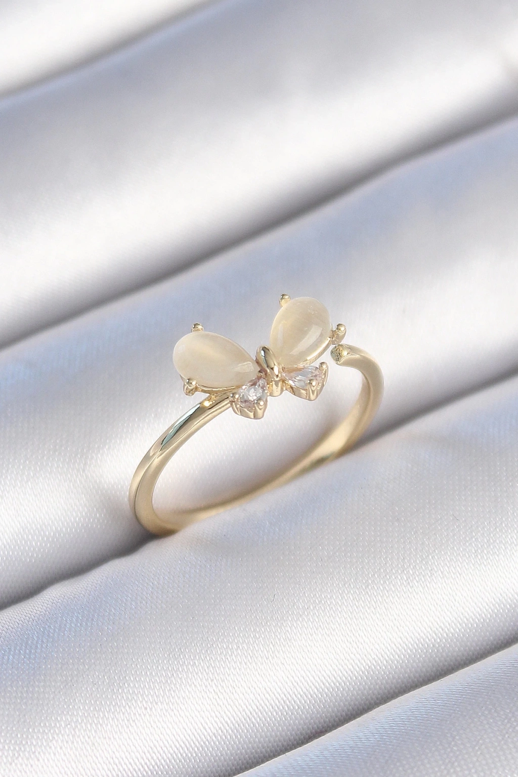 BFS Pirinç Gold Renk Beyaz Mineli Zirkon Taşlı Kelebek Model Kadın Yüzük