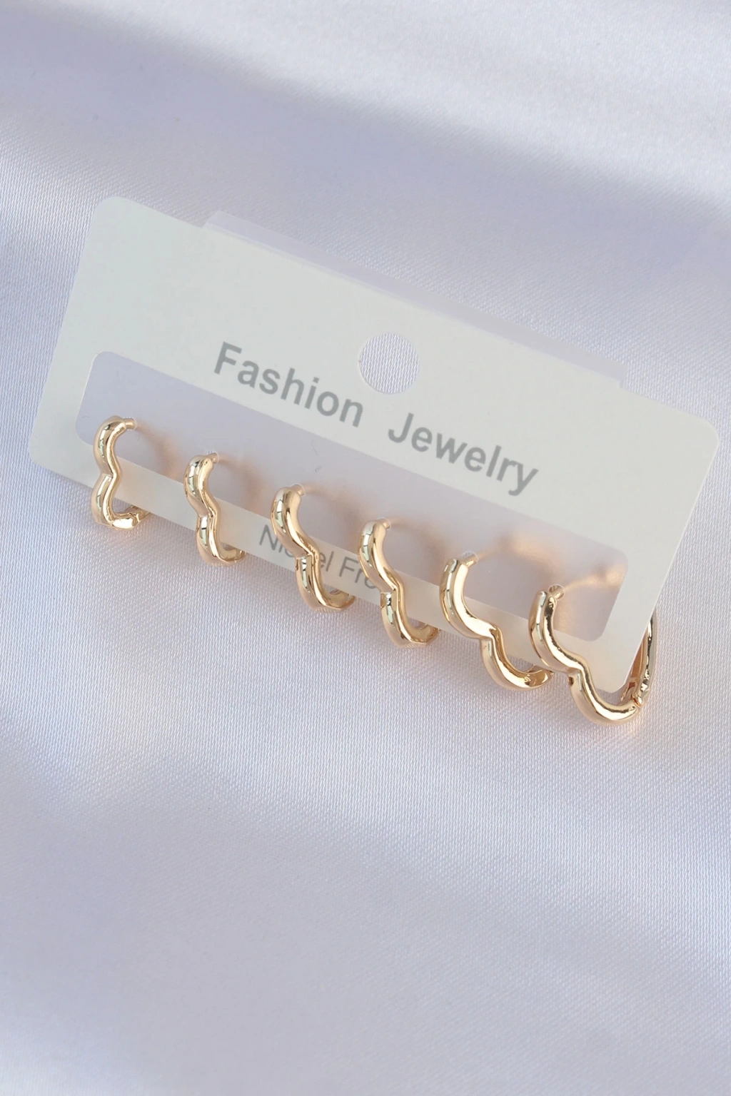 BFS Pirinç Gold Renk Kalp Model Küpe Seti
