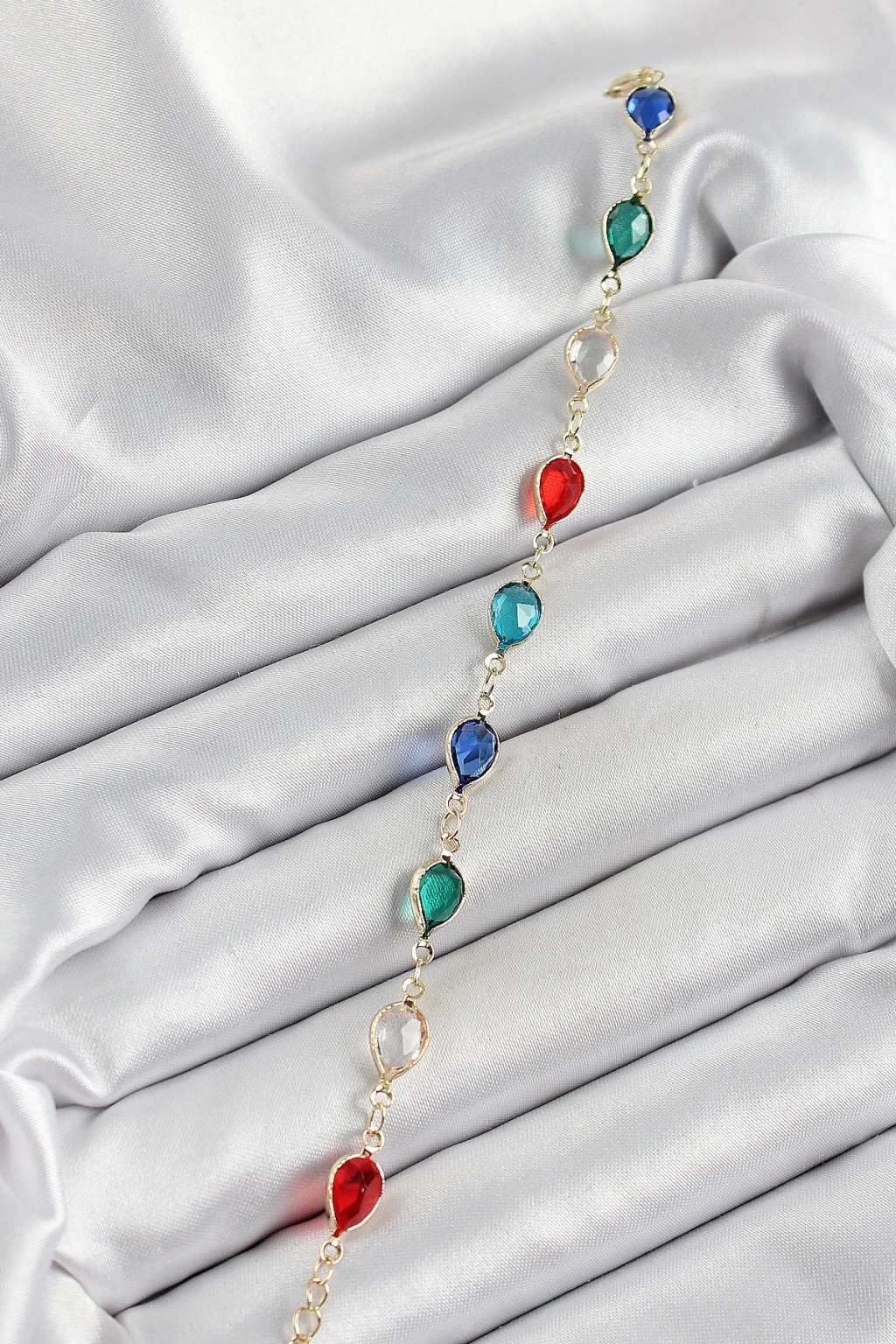 BFS Pirinç Gold Renk Karışık Renk Damla Zirkon Taşlı Kadın Bileklik