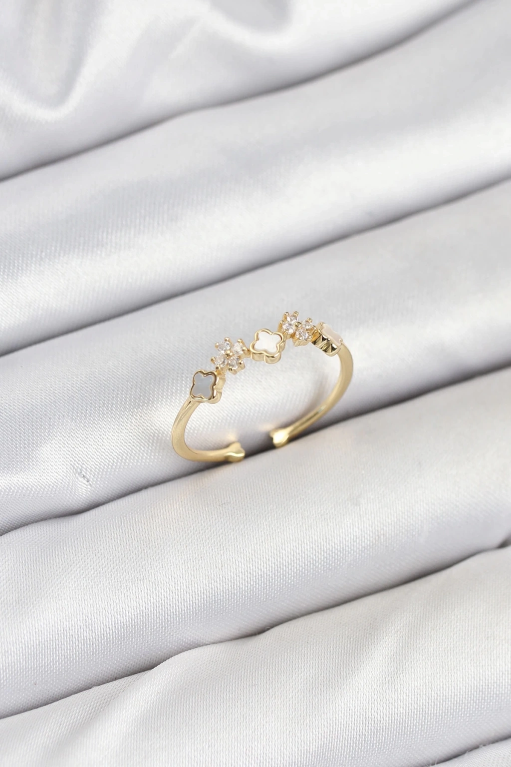 BFS Pirinç Gold Renk Minimal Yonca Detaylı Kadın Yüzük
