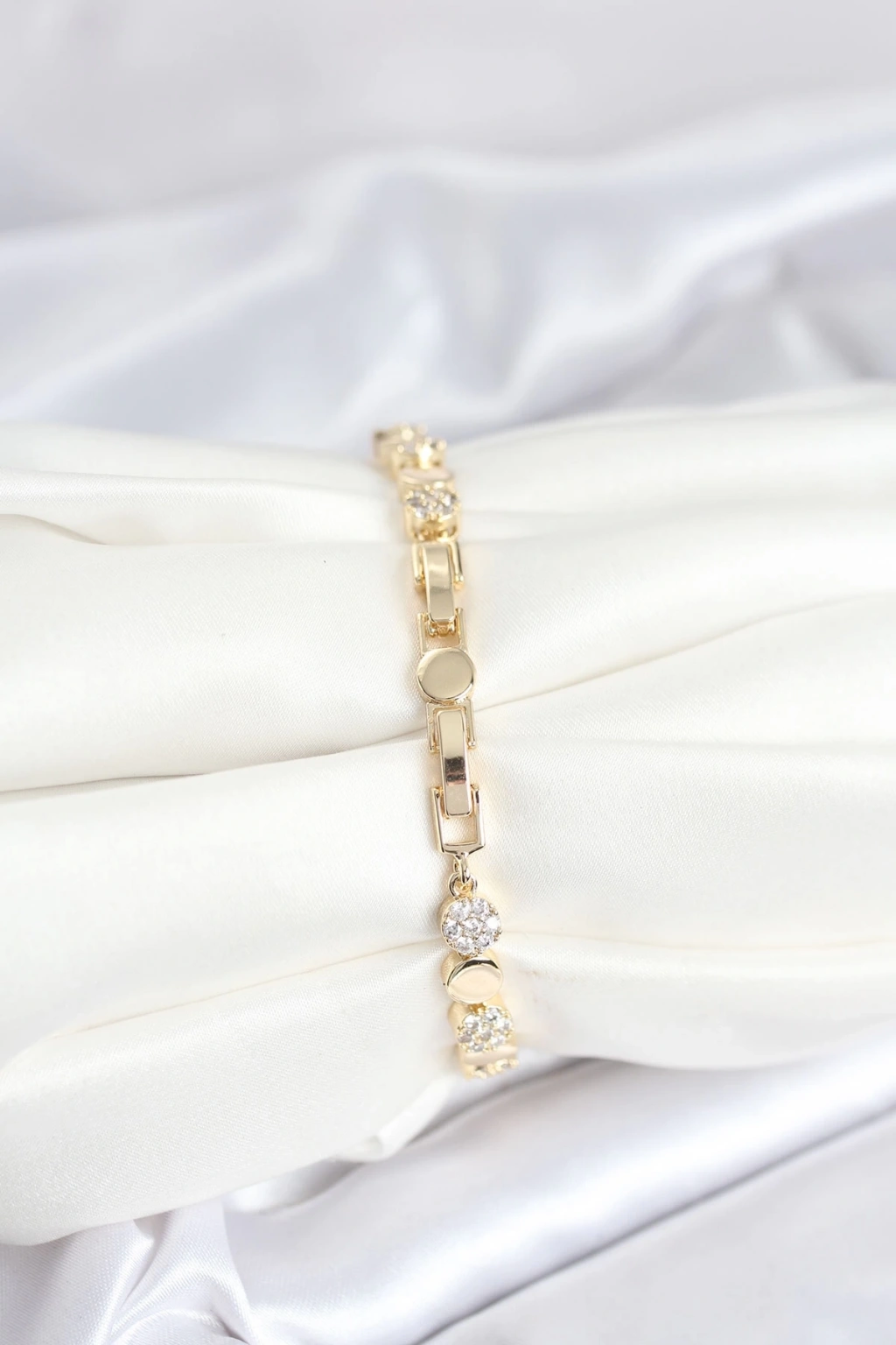 BFS Pirinç Gold Renk Nokta Model Zirkon Taşlı Kadın Bileklik