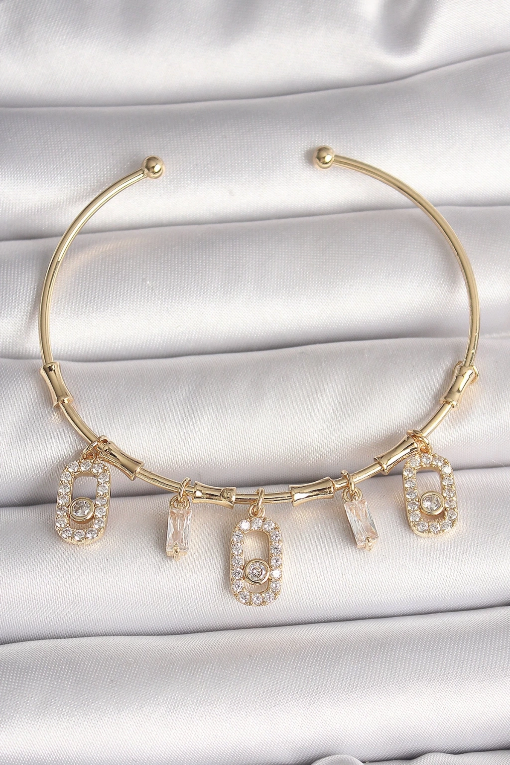 BFS Pirinç Gold Renk Sallantı Zirkon Taşlı Messika Figür Charm Kadın Bileklik