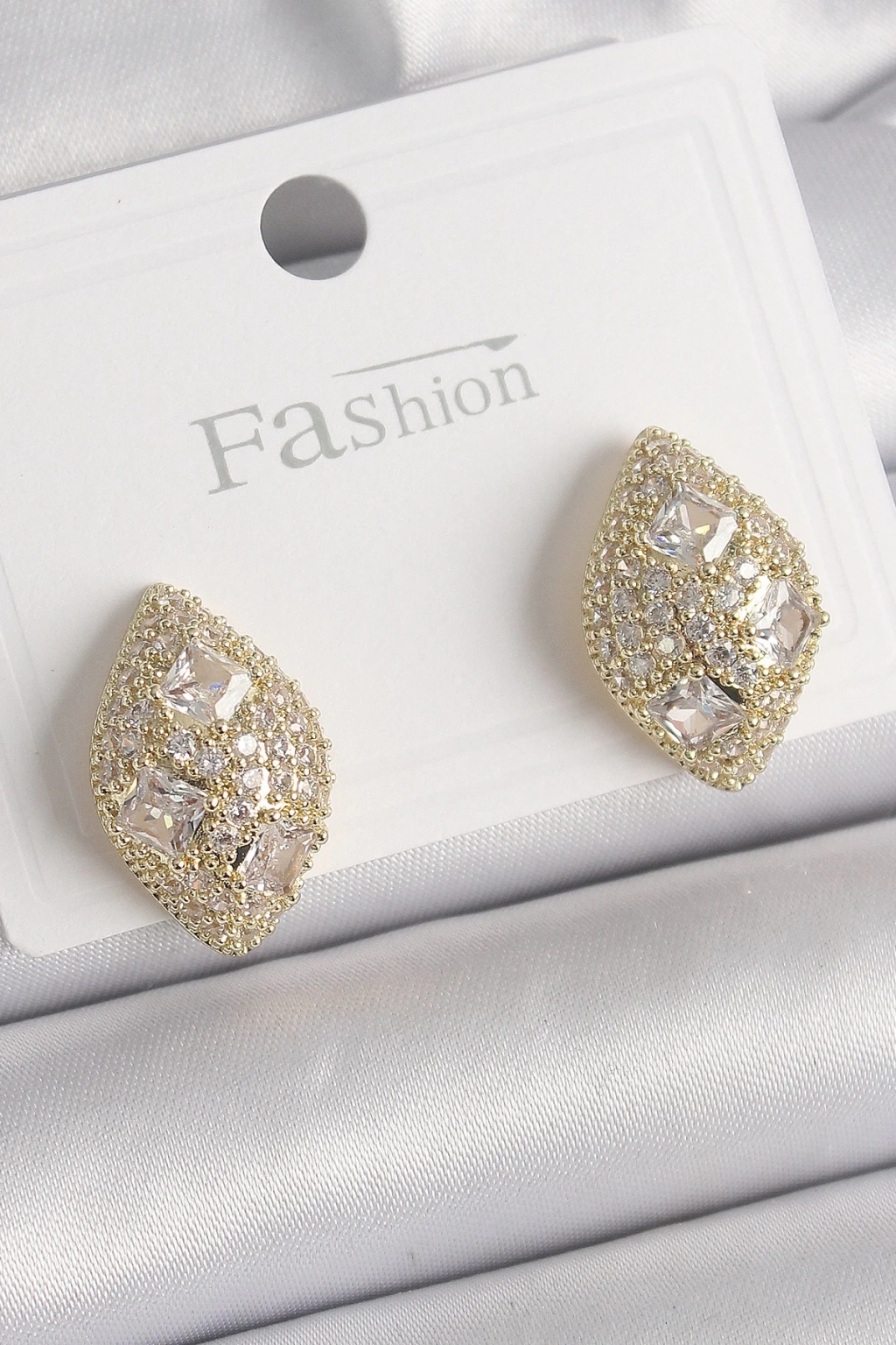 BFS Pirinç Gold Renk Zirkon Taş İşlemeli Damla Model Kadın Küpe