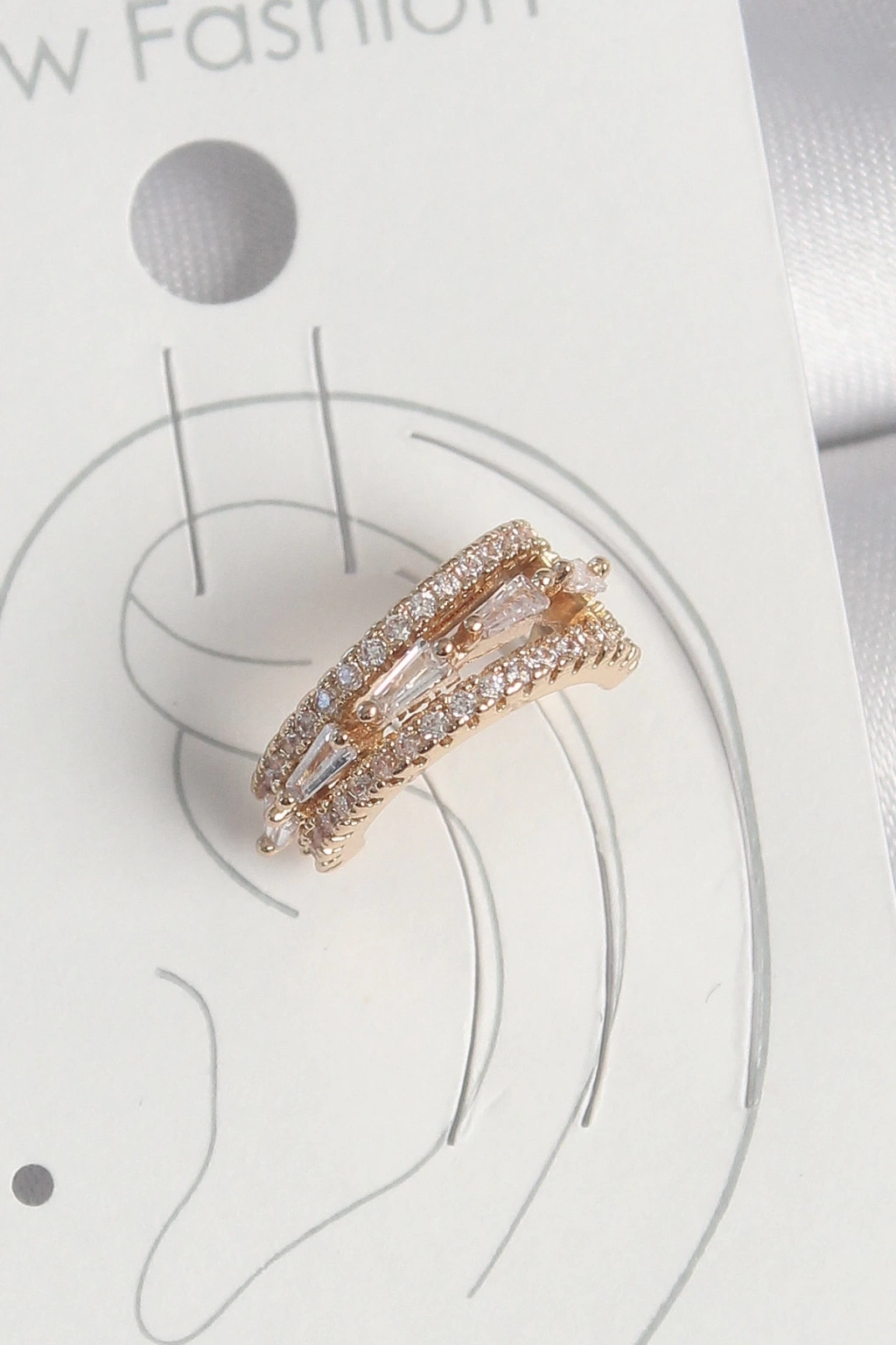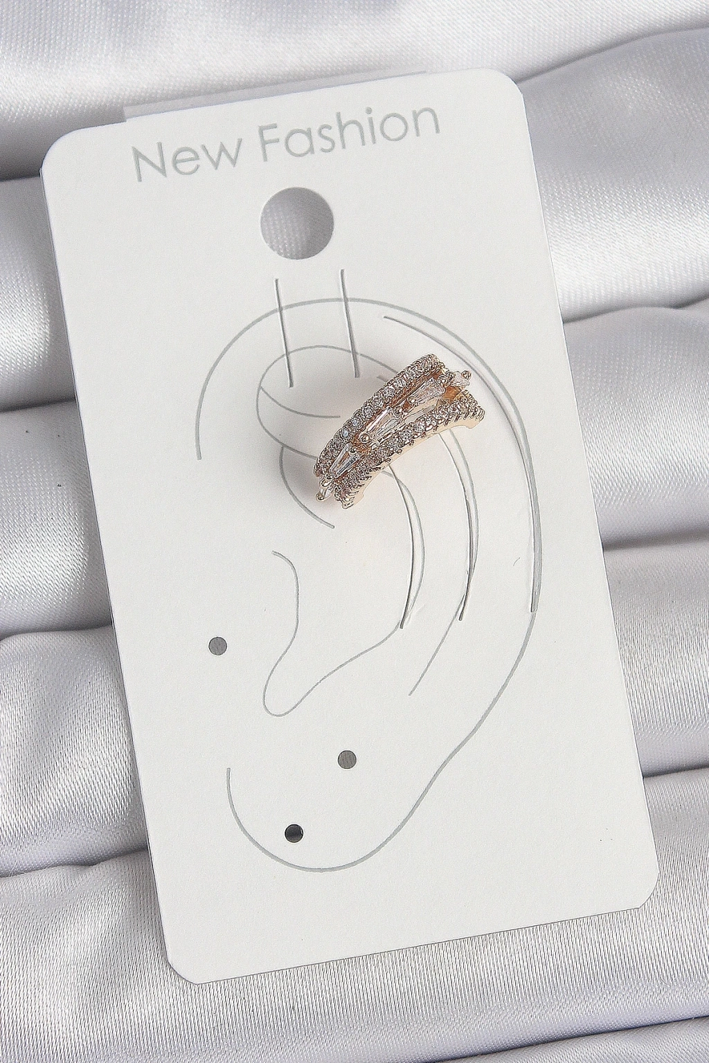 BFS Pirinç Gold Renk Zirkon Taşlı 3'Lü Sıralı Model Kadın Kıkırdak Küpe
