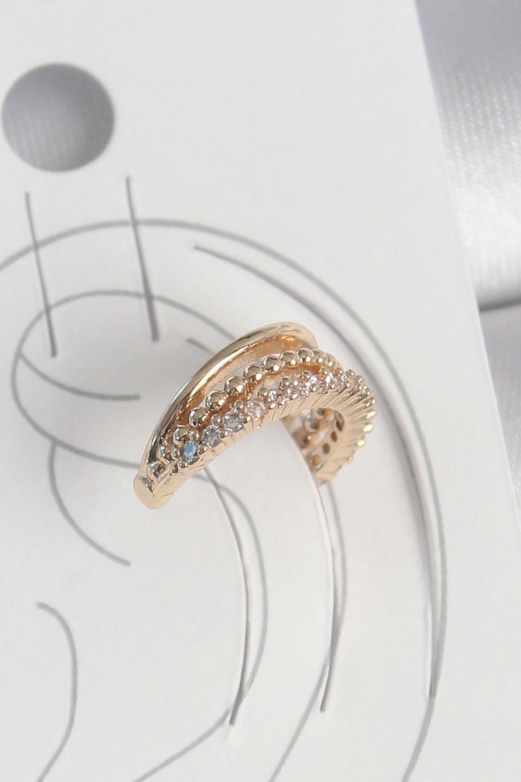 BFS Pirinç Gold Renk Zirkon Taşlı 3'Lü Sıralı Model Kadın Kıkırdak Küpe