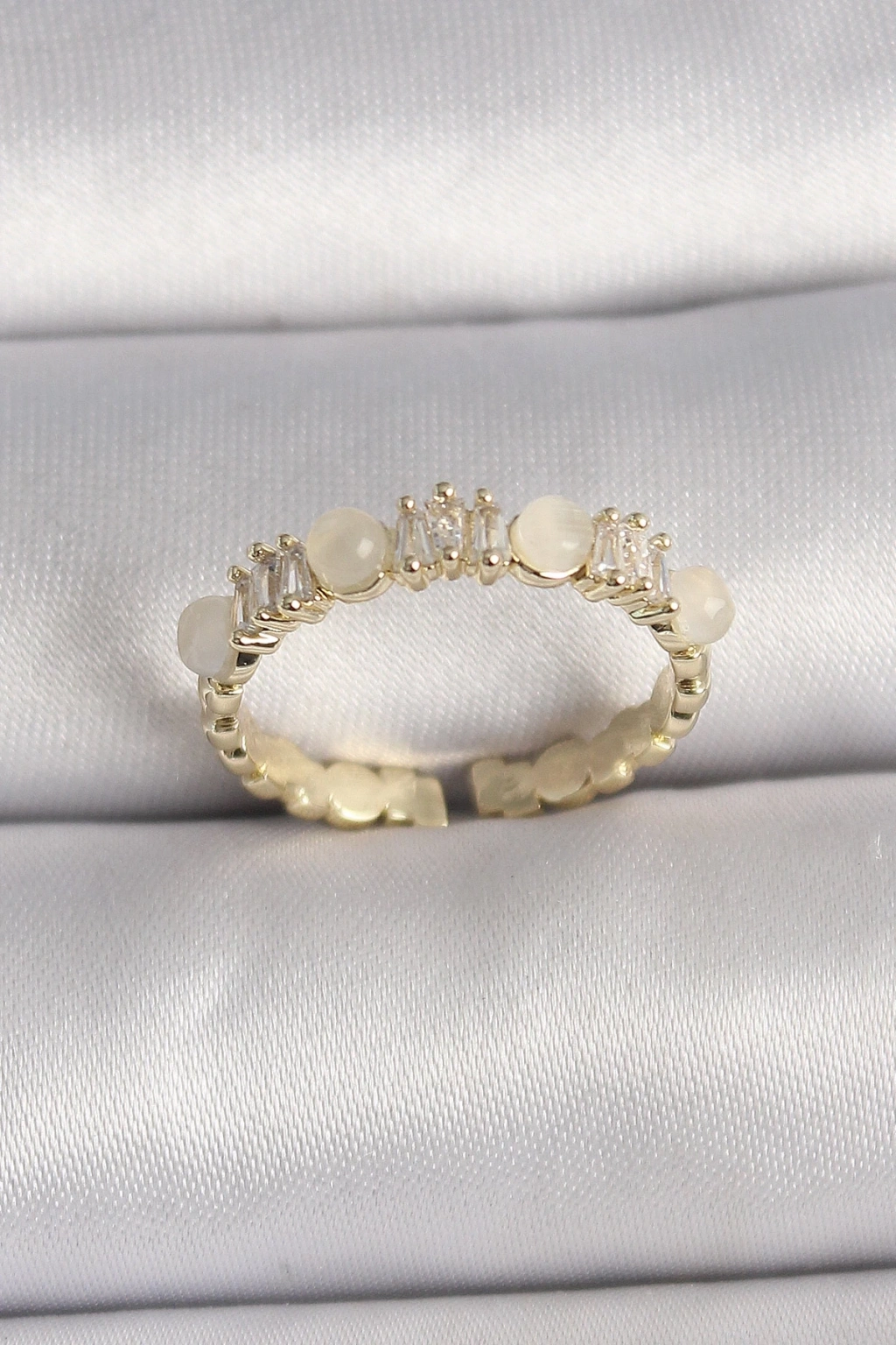 BFS Pirinç Gold Renk Zirkon Taşlı Beyaz Mineli Ayarlanabilir Yüzük