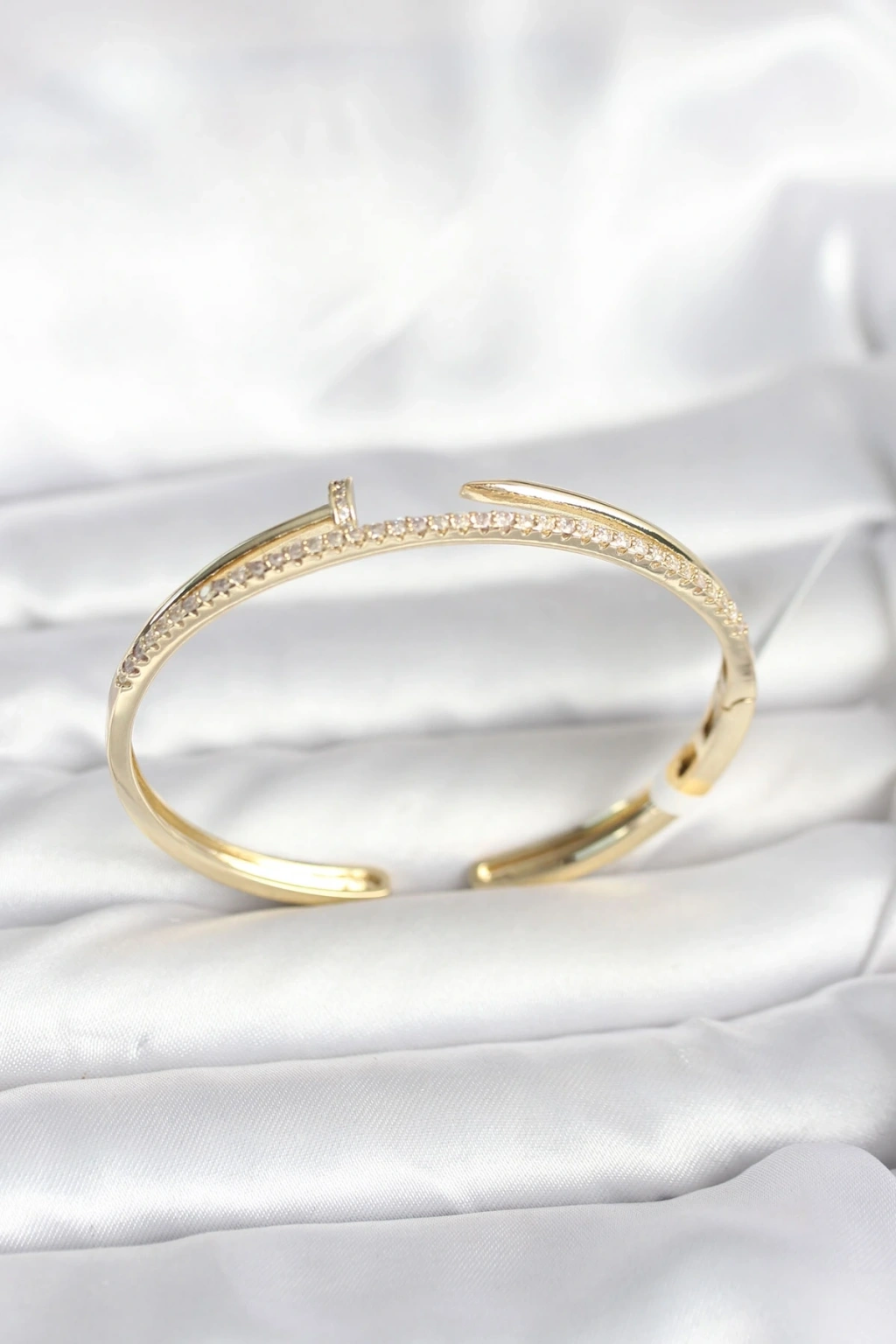 BFS Pirinç Gold Renk Zirkon Taşlı Çivi Model Kadın Kelepçe Bileklik
