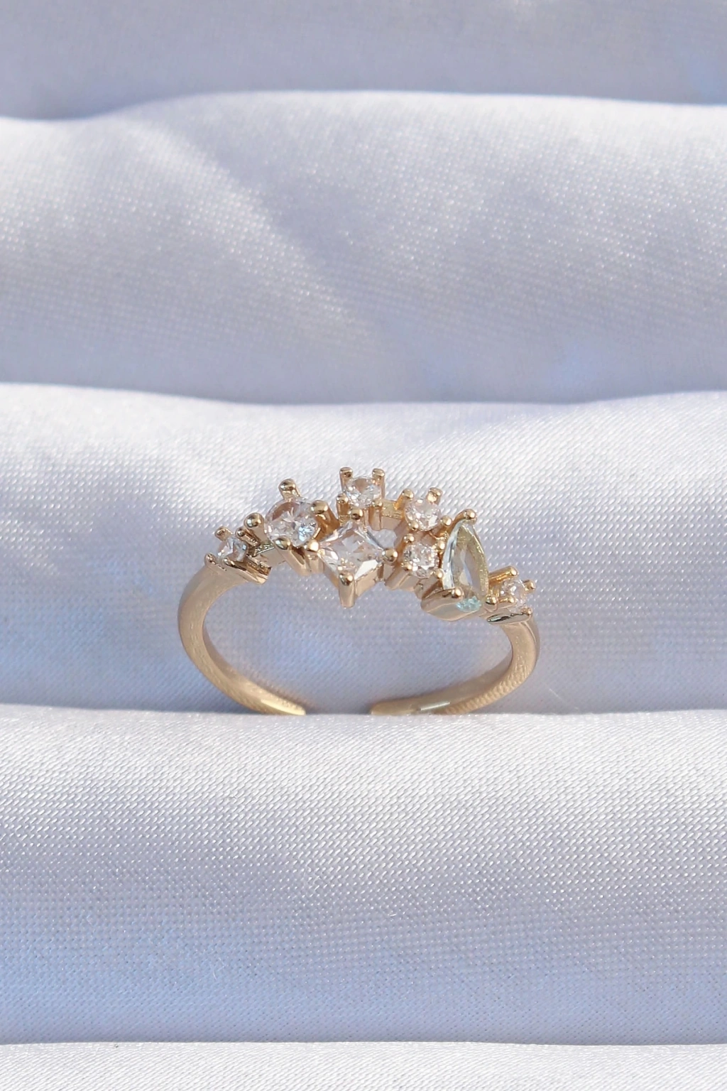 BFS Pirinç Gold Renk Zirkon Taşlı Damla Detay Ayarlanabilir Yüzük