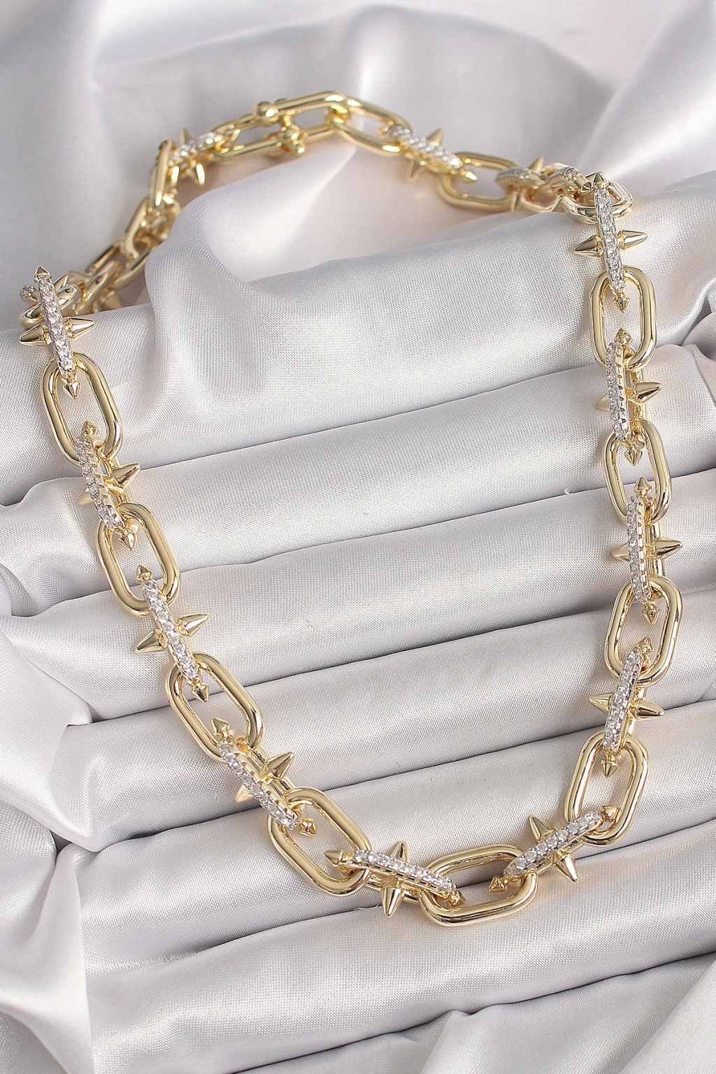 BFS Pirinç Gold Renk Zirkon Taşlı Dikenli Halka Model VIP Exculusive Seri Kadın Kolye