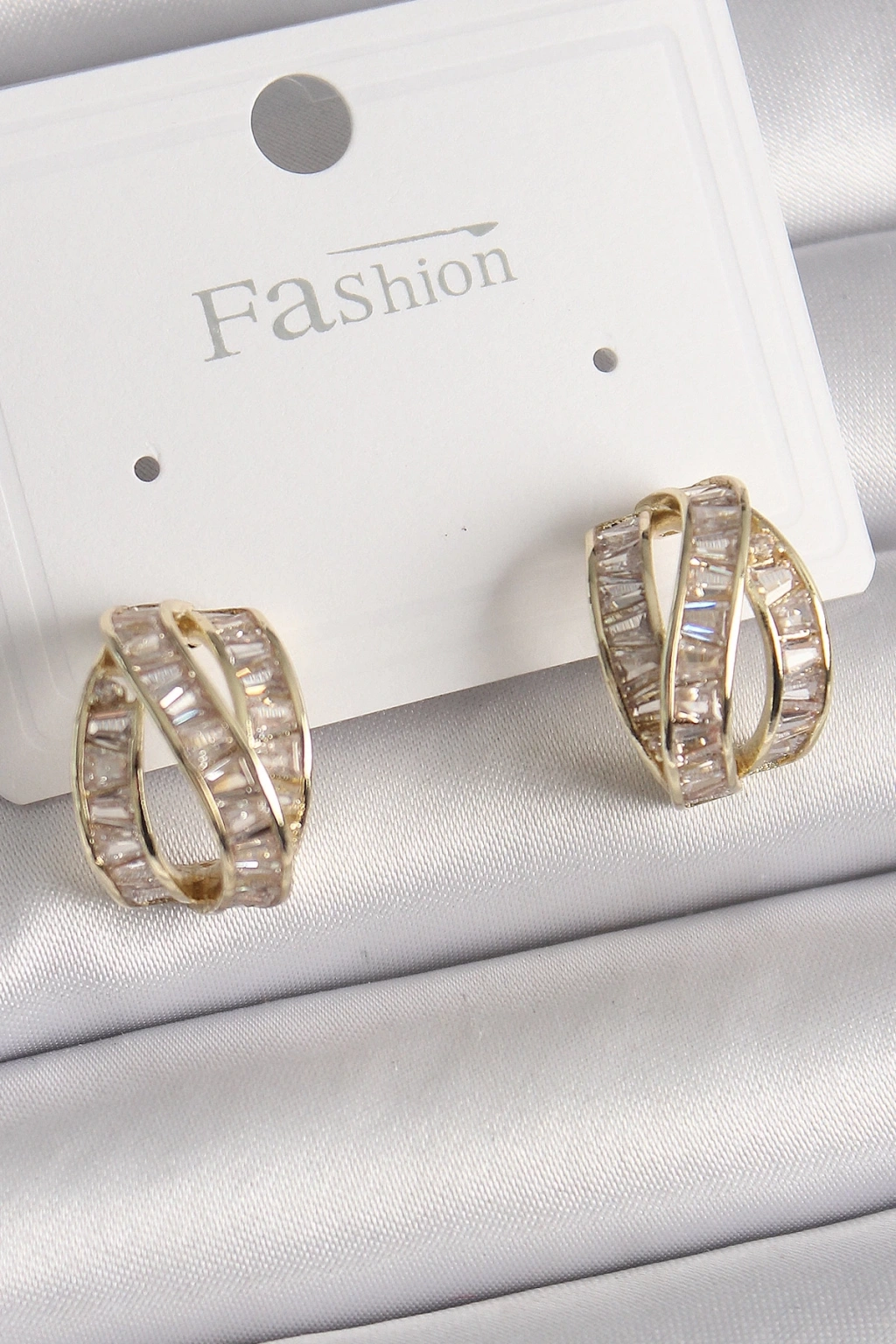 BFS Pirinç Gold Renk Zirkon Taşlı Düğüm Halka Model Kadın Küpe