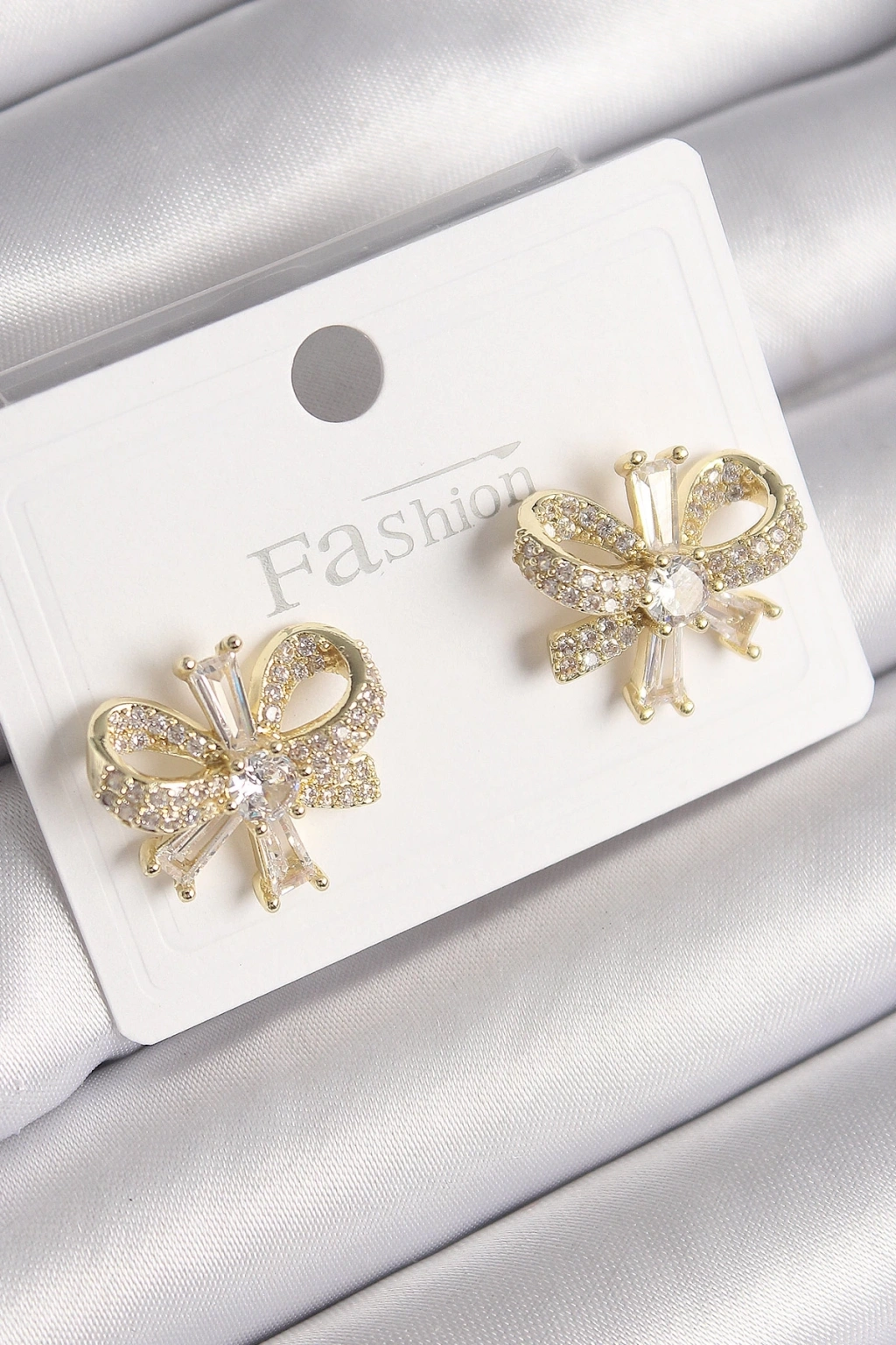 BFS Pirinç Gold Renk Zirkon Taşlı Fiyonk Model Kadın Küpe