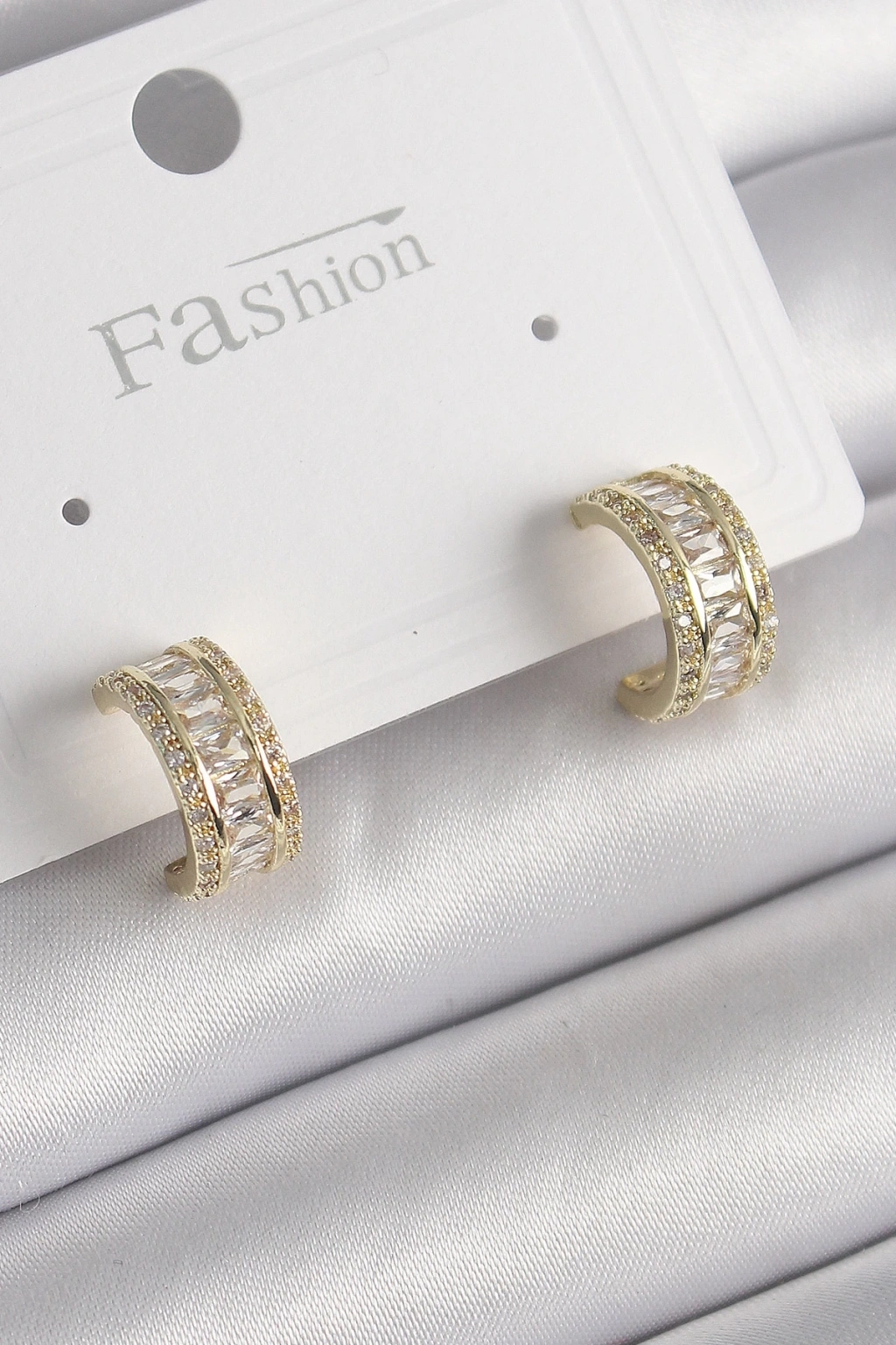 BFS Pirinç Gold Renk Zirkon Taşlı Halka Model Kadın Küpe
