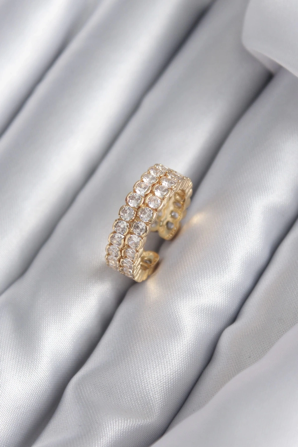 BFS Pirinç Gold Renk Zirkon Taşlı Kadın Yüzük