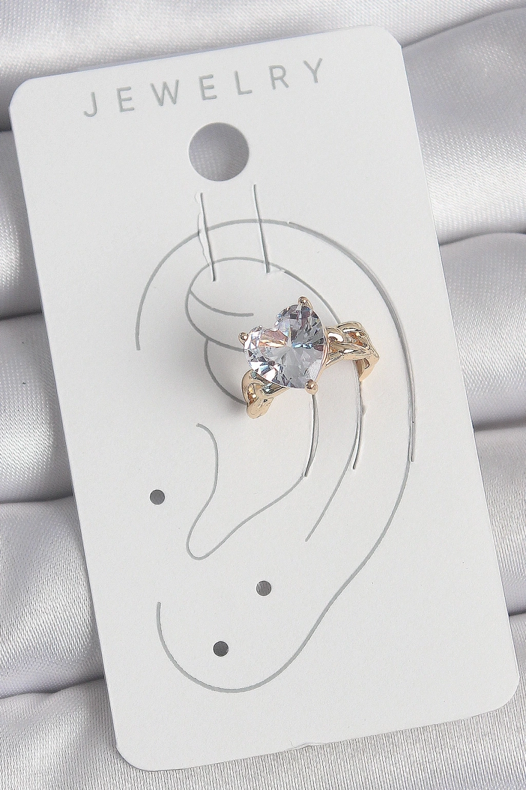 BFS Pirinç Gold Renk Zirkon Taşlı Kalp Model Kadın Kıkırdak Küpe