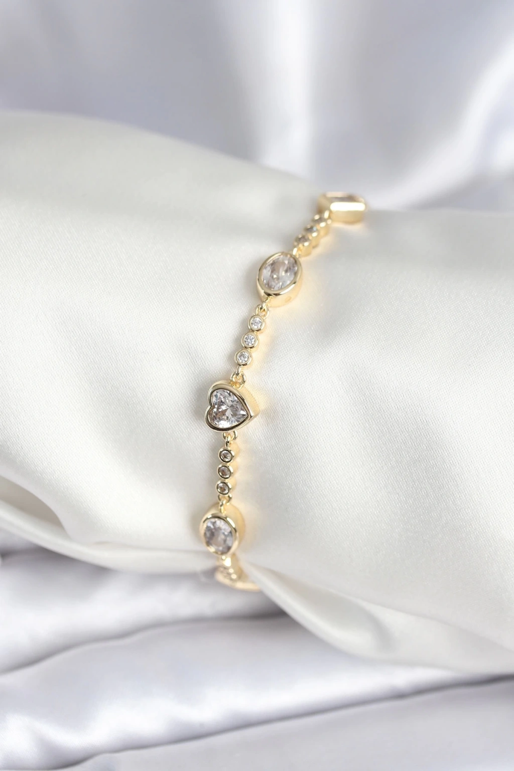 BFS Pirinç Gold Renk Zirkon Taşlı Kalpli Model Kadın Bileklik