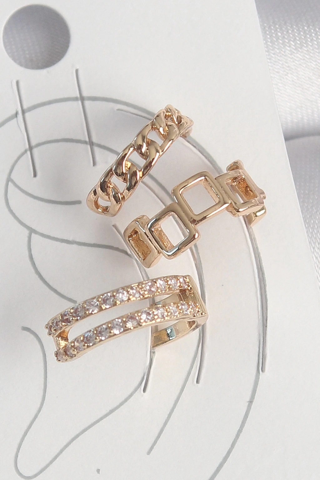 BFS Pirinç Gold Renk Zirkon Taşlı Kare Zincir Model Kadın Kıkırdak Küpe