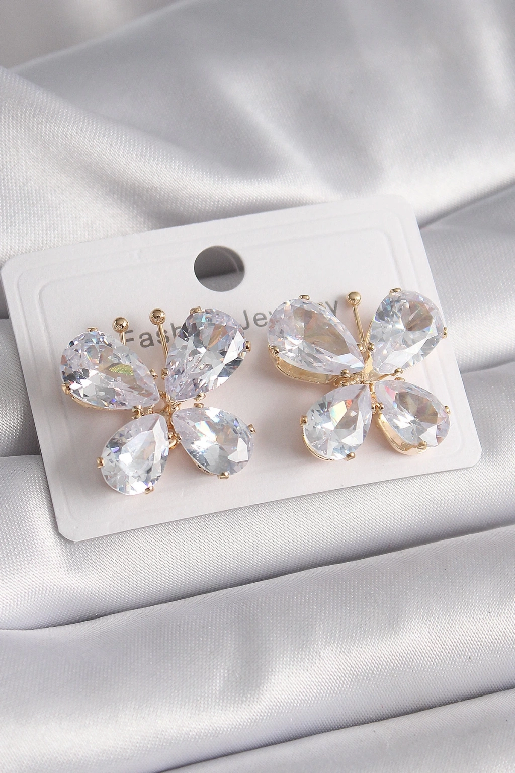 BFS Pirinç Gold Renk Zirkon Taşlı Kelebek Model Kadın Küpe