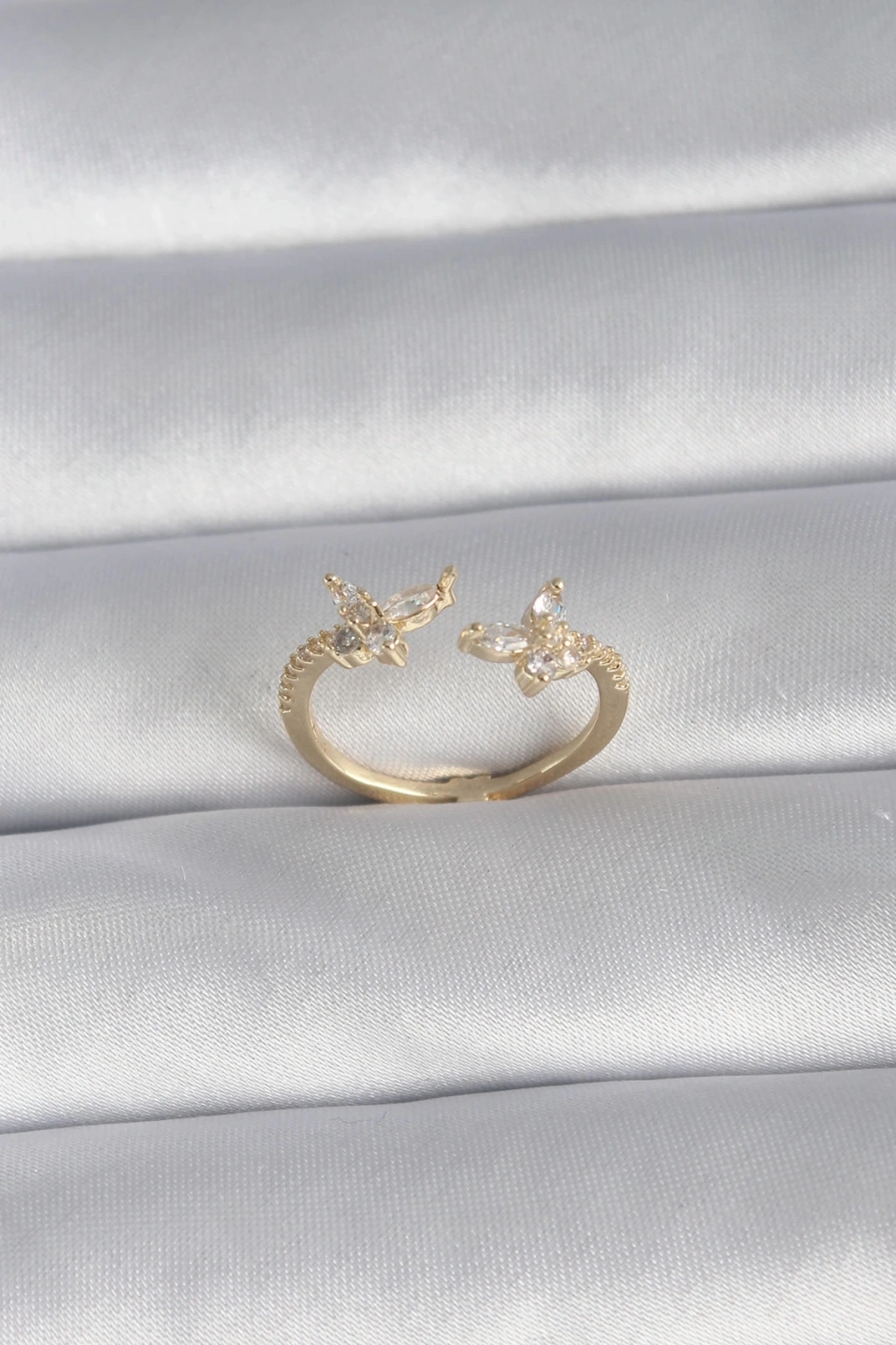 BFS Pirinç Gold Renk Zirkon Taşlı Kelebek Model Kadın Yüzük