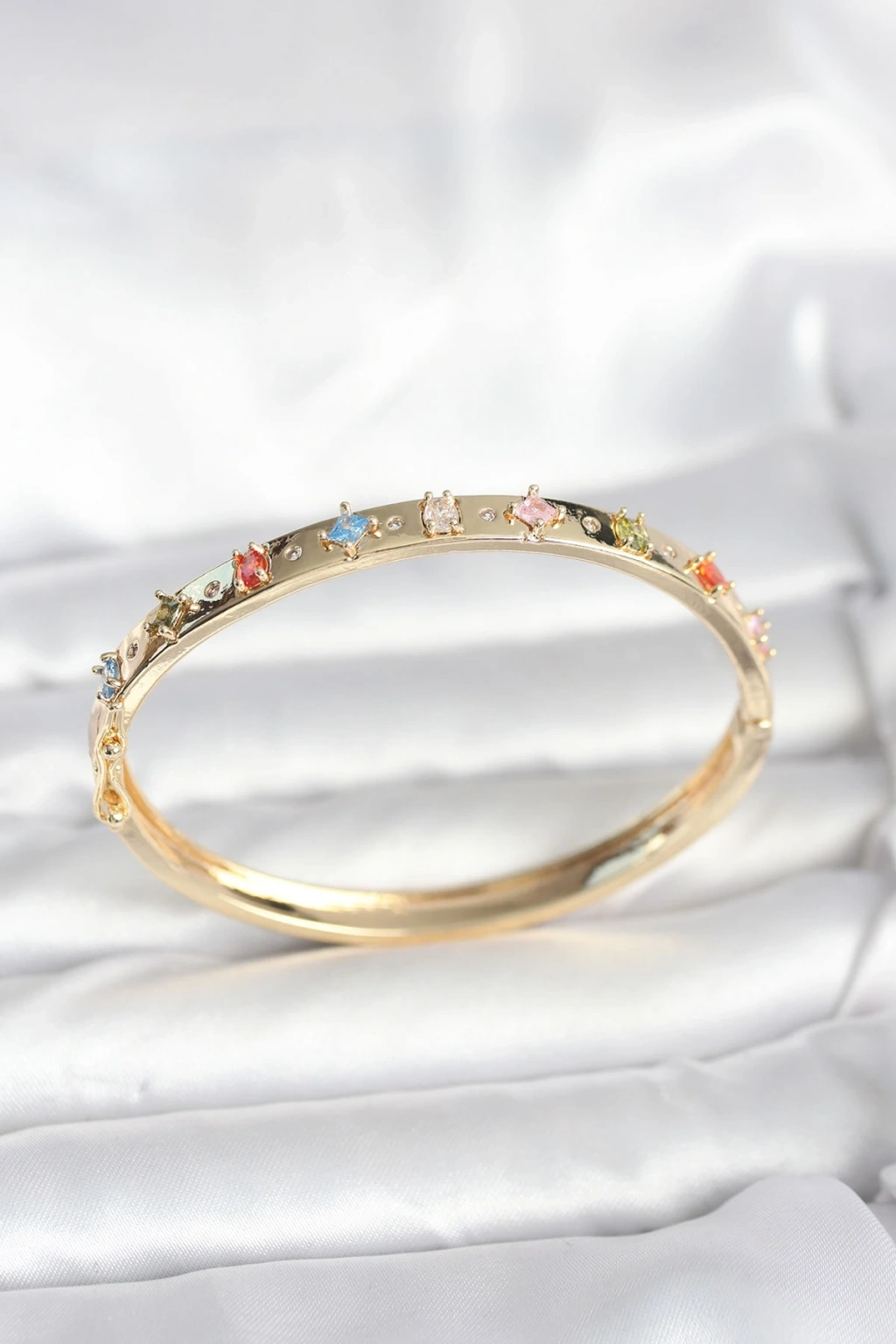 BFS Pirinç Gold Renk Zirkon Taşlı Kelepçe Bileklik