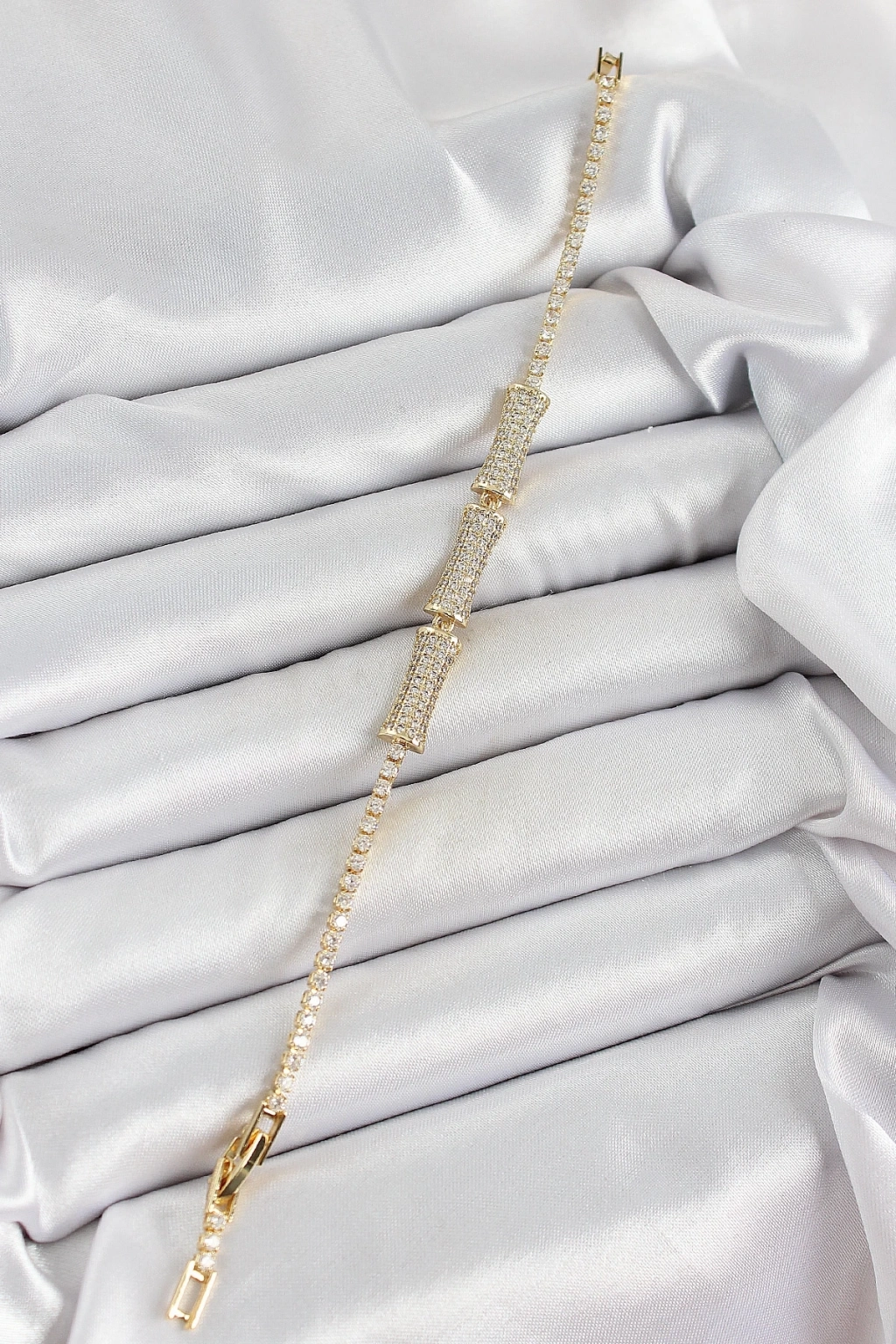 BFS Pirinç Gold Renk Zirkon Taşlı Kemik Model Kadın Bileklik
