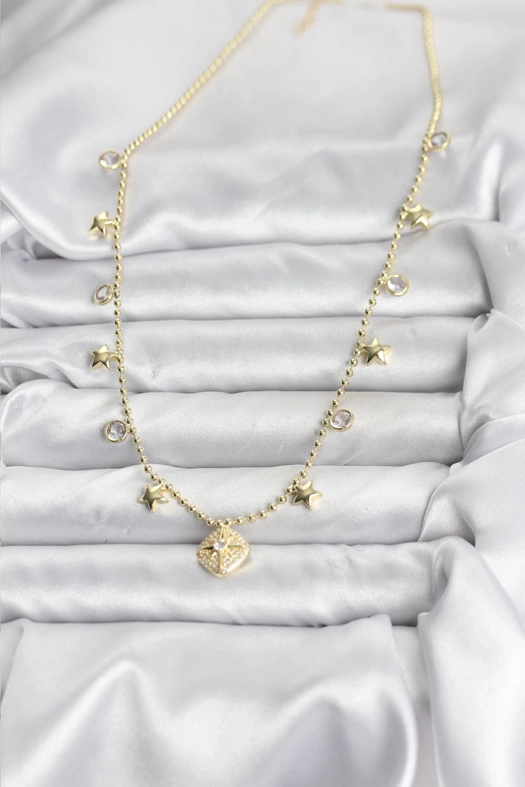 BFS Pirinç Gold Renk Zirkon Taşlı Kutup Yıldızı Model Kadın Kolye