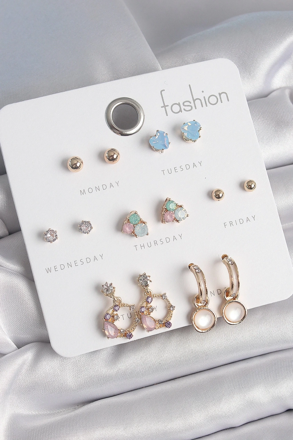 BFS Pirinç Gold Renk Zirkon Taşlı Sallantı Halka Figür Kalp Detay 7 Çift Kadın Küpe