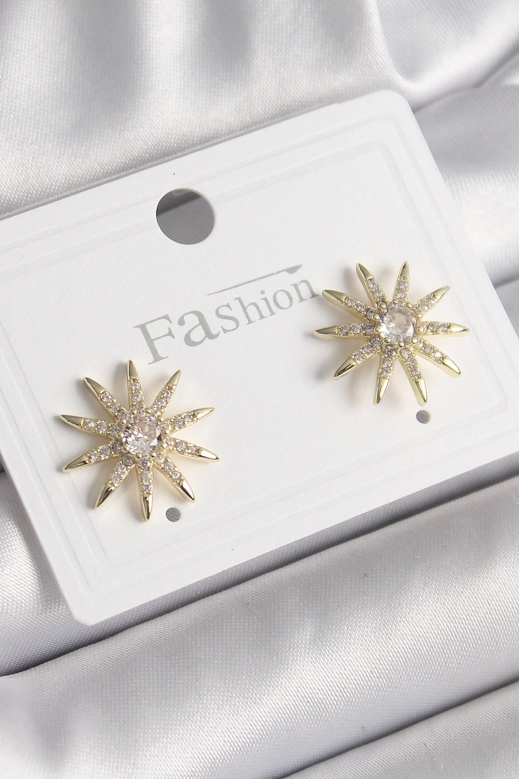BFS Pirinç Gold Renk Zirkon Taşlı Yıdız Model Kadın Küpe