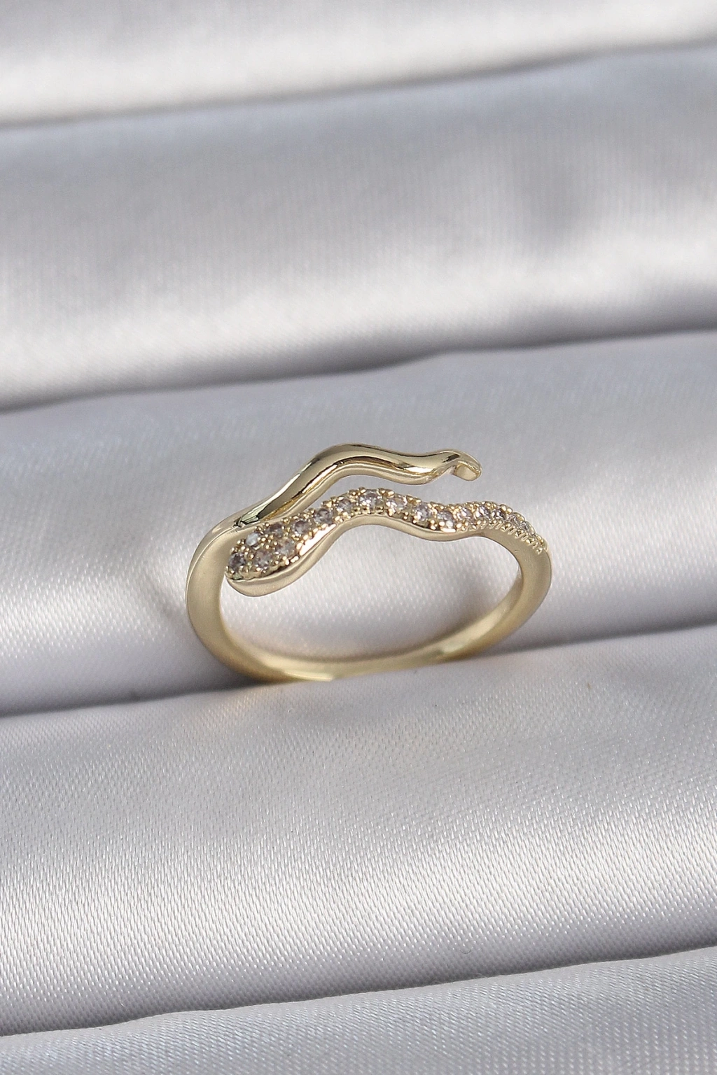 BFS Pirinç Gold Renk Zirkon Taşlı Yılan Ayarlanabilir Model Kadın Yüzük