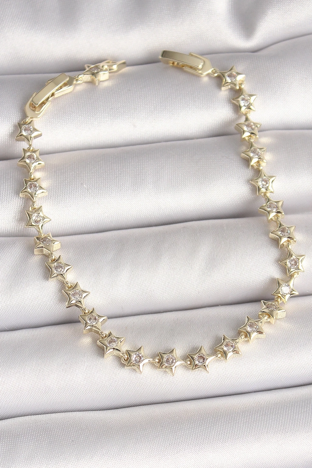 BFS Pirinç Gold Renk Zirkon Taşlı Yıldız Model VIP Seri Kadın Bileklik