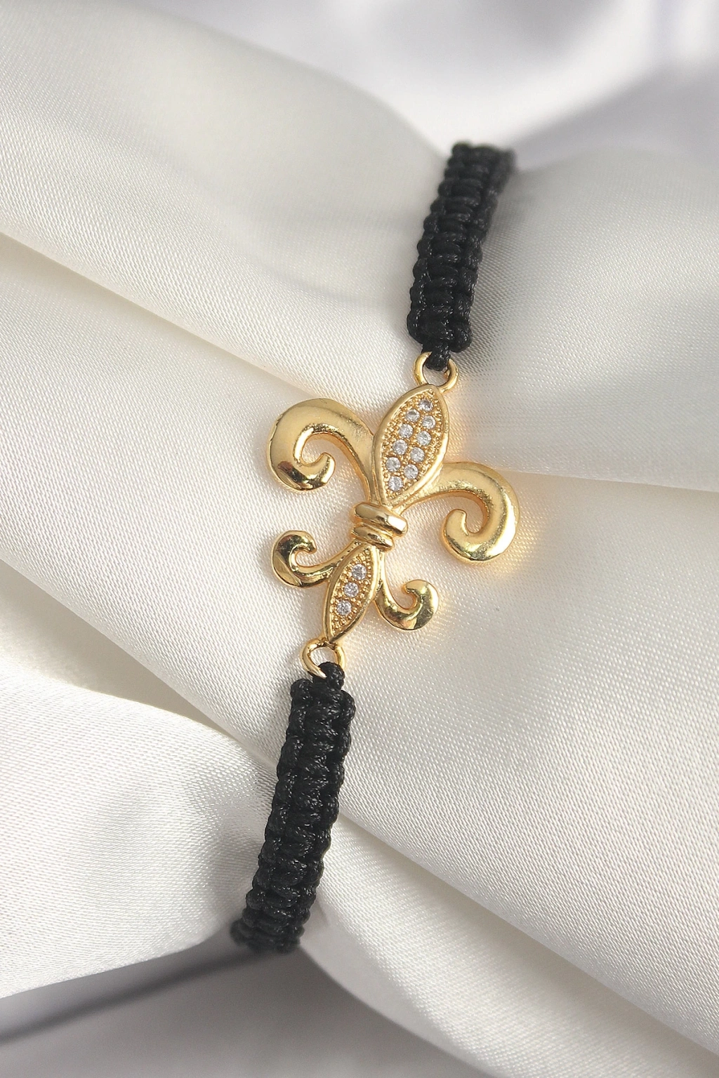 BFS Pirinç Gold Renk Zirkon Taşlı Zambak Figür Asansörlü Makrome Model Kadın Bileklik