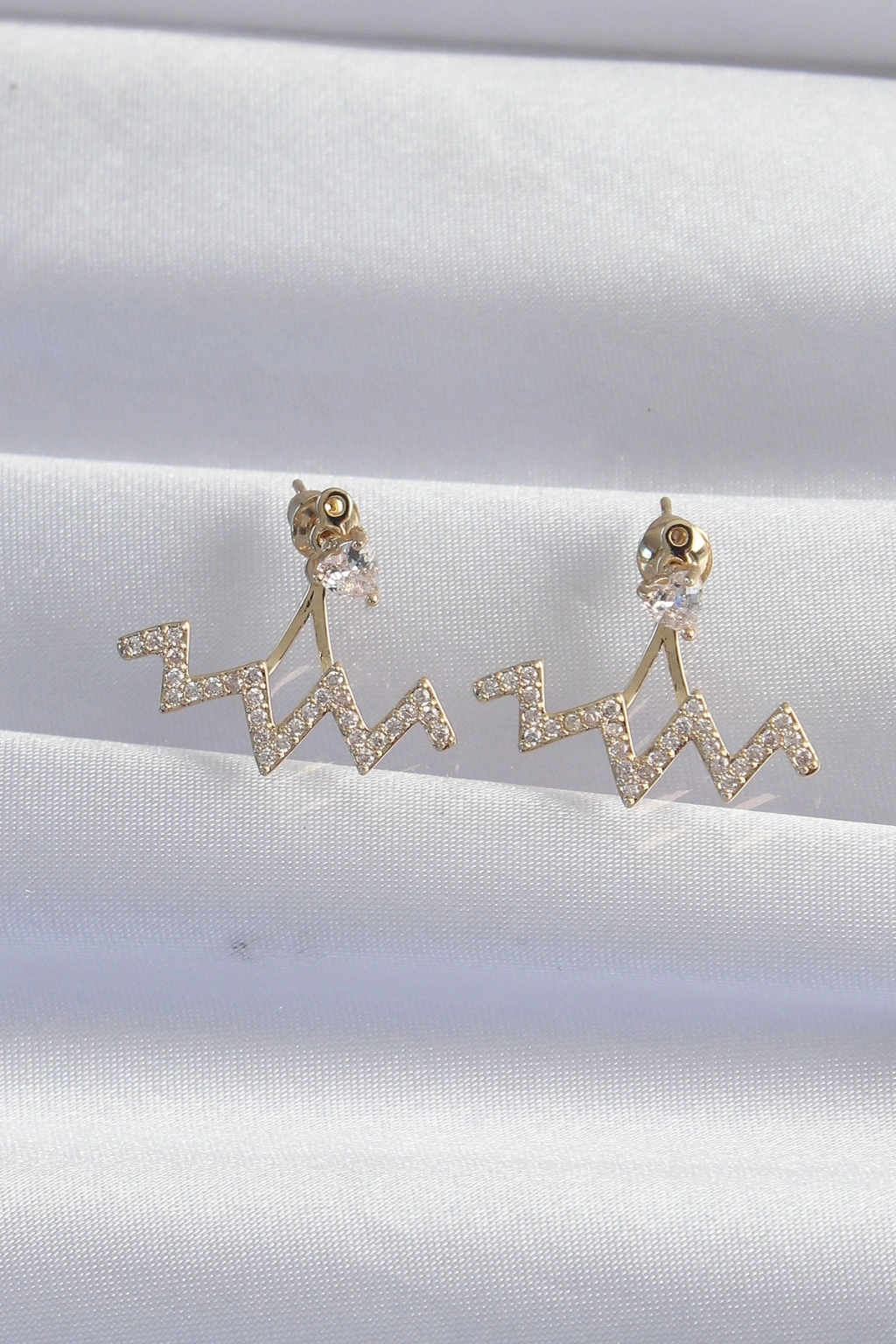 BFS Pirinç Gold Renk Zirkon Taşlı Zikzak Küpe