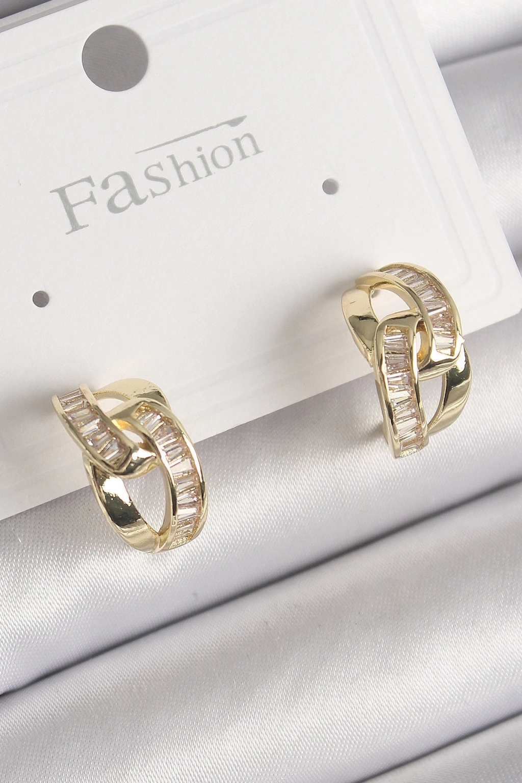 BFS Pirinç Gold Renk Zirkon Taşlı Zincir Model Kadın Küpe