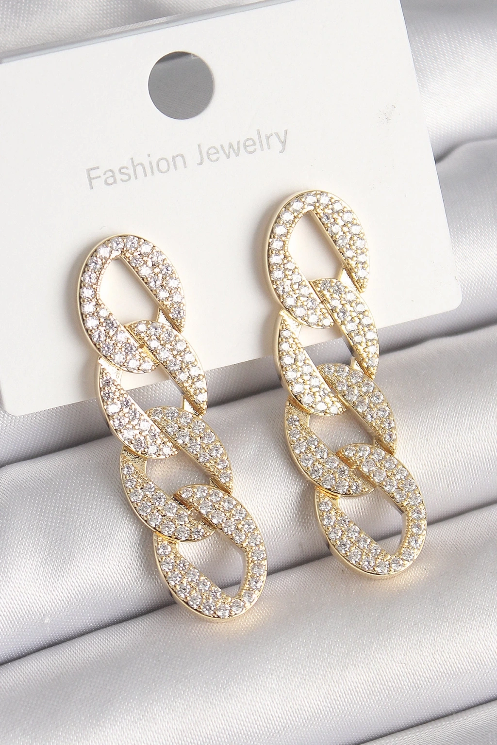 BFS Pirinç Gold Renk Zirkon Taşlı Zincir Model Kadın Küpe