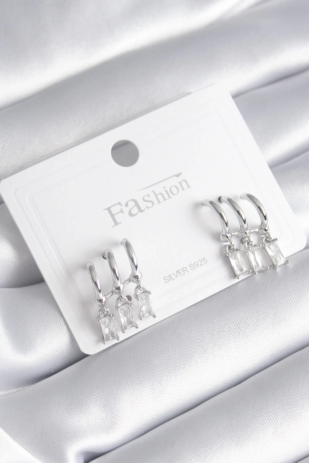 BFS Pirinç Gümüş Renk 3'lü Sallantı Zirkon Taşlı Küpe
