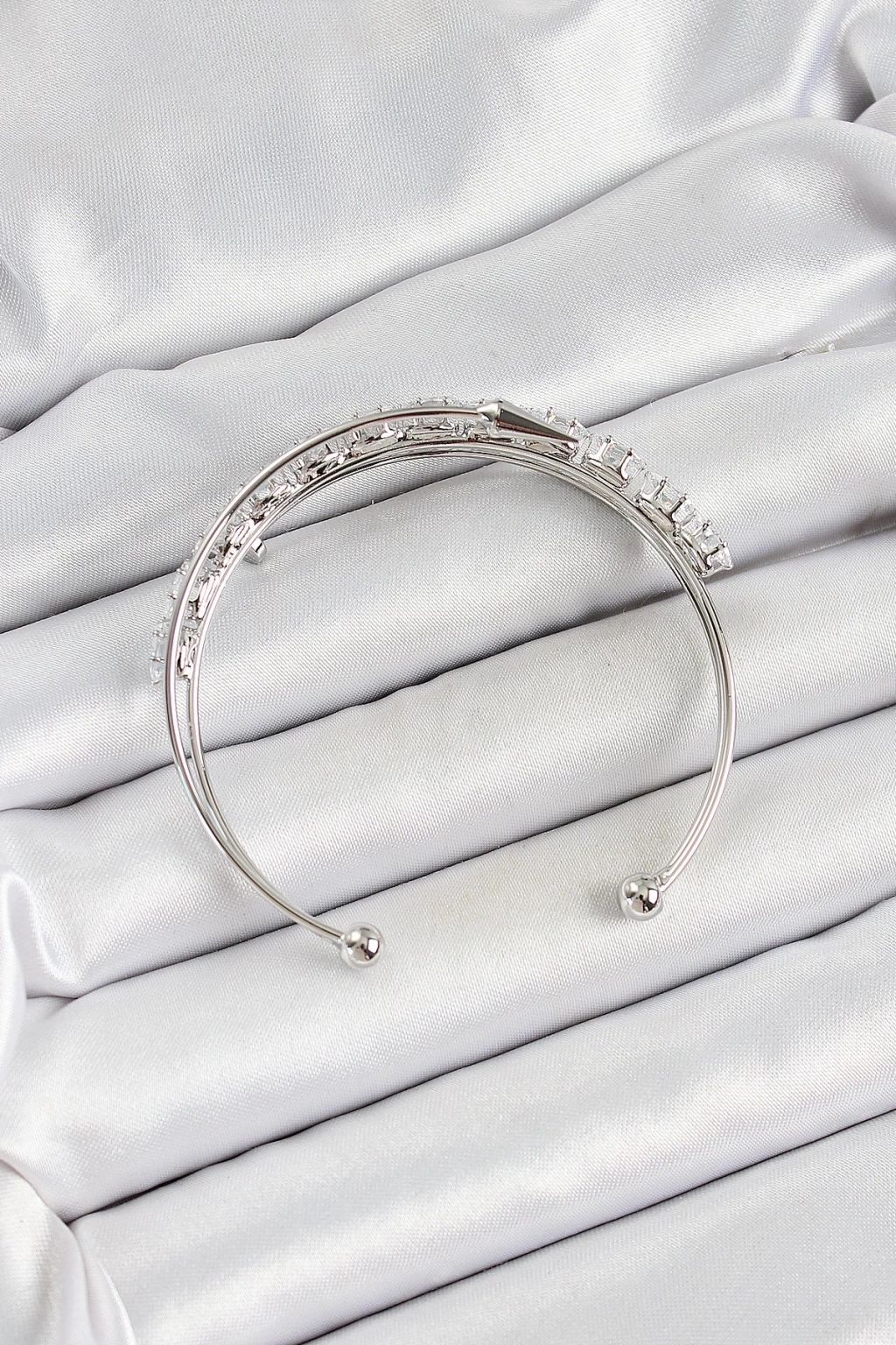 BFS Pirinç Gümüş Renk Arpa Zirkon Taşlı Kadın Bileklik