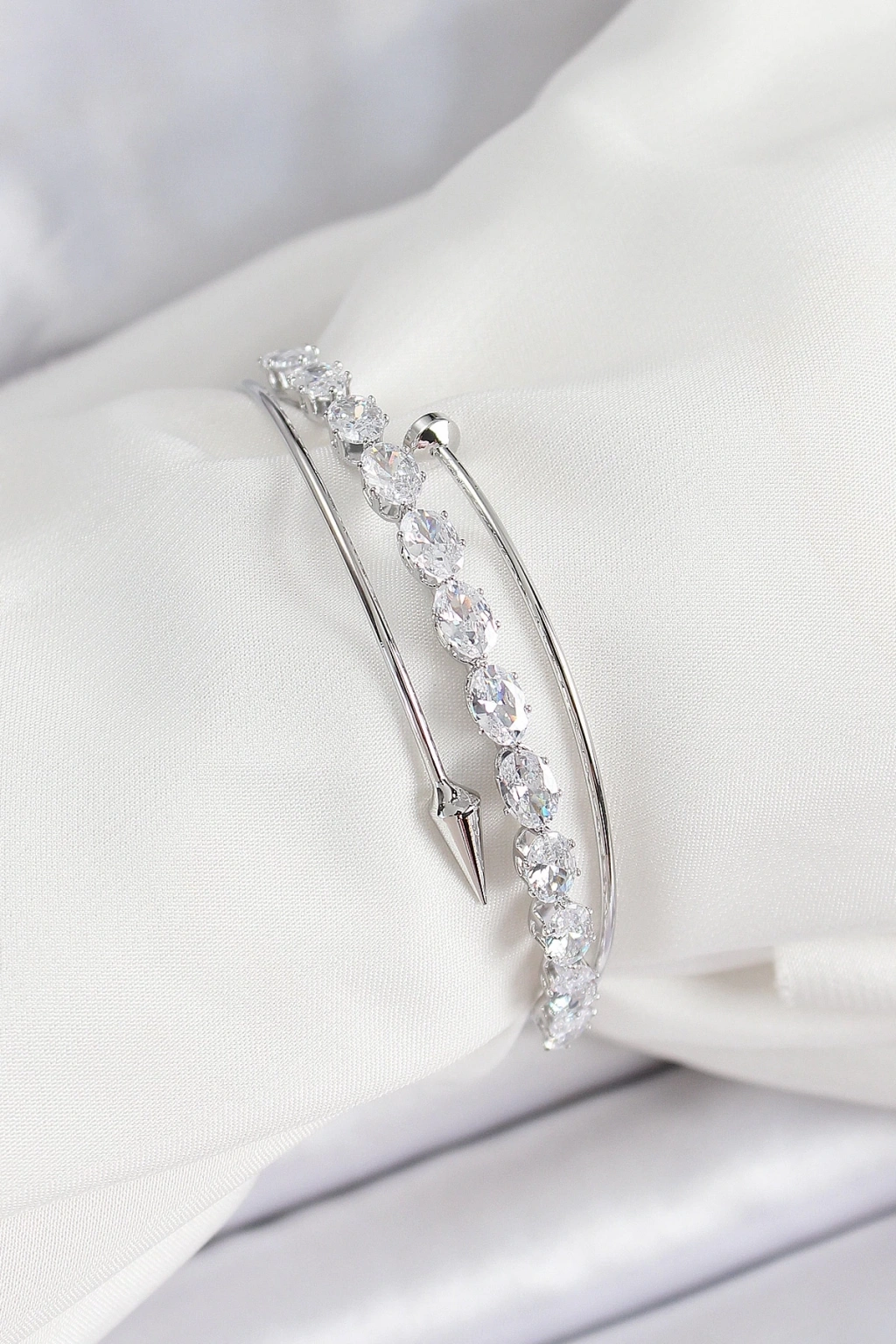 BFS Pirinç Gümüş Renk Arpa Zirkon Taşlı Kadın Bileklik