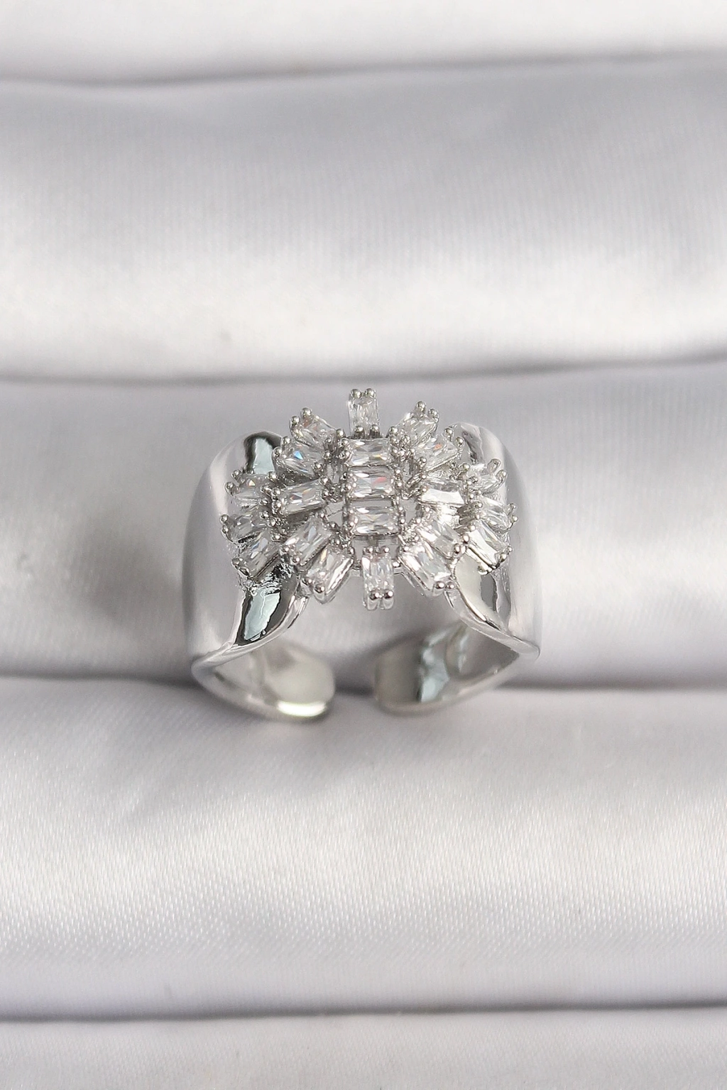 BFS Pirinç Gümüş Renk Ayarlanabilir Baget Zirkon Taş Model Kadın Yüzük