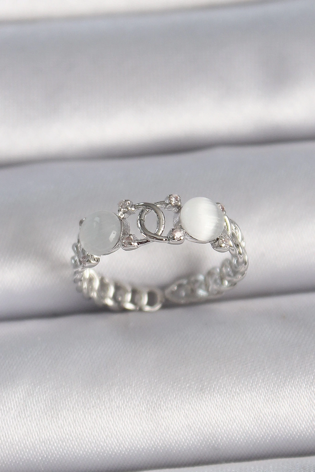 BFS Pirinç Gümüş Renk Ayarlanabilir Zirkon Taşlı Beyaz Mineli Birleşik Halka Model Kadın Yüzük