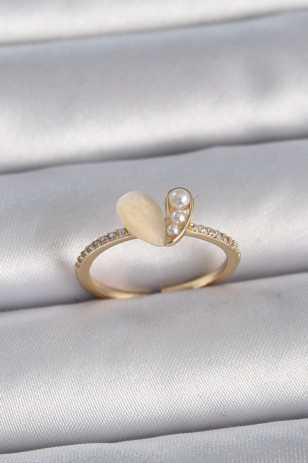 BFS Pirinç Gümüş Renk Ayarlanabilir Zirkon Taşlı Beyaz Mineli Kalp Model Kadın Yüzük
