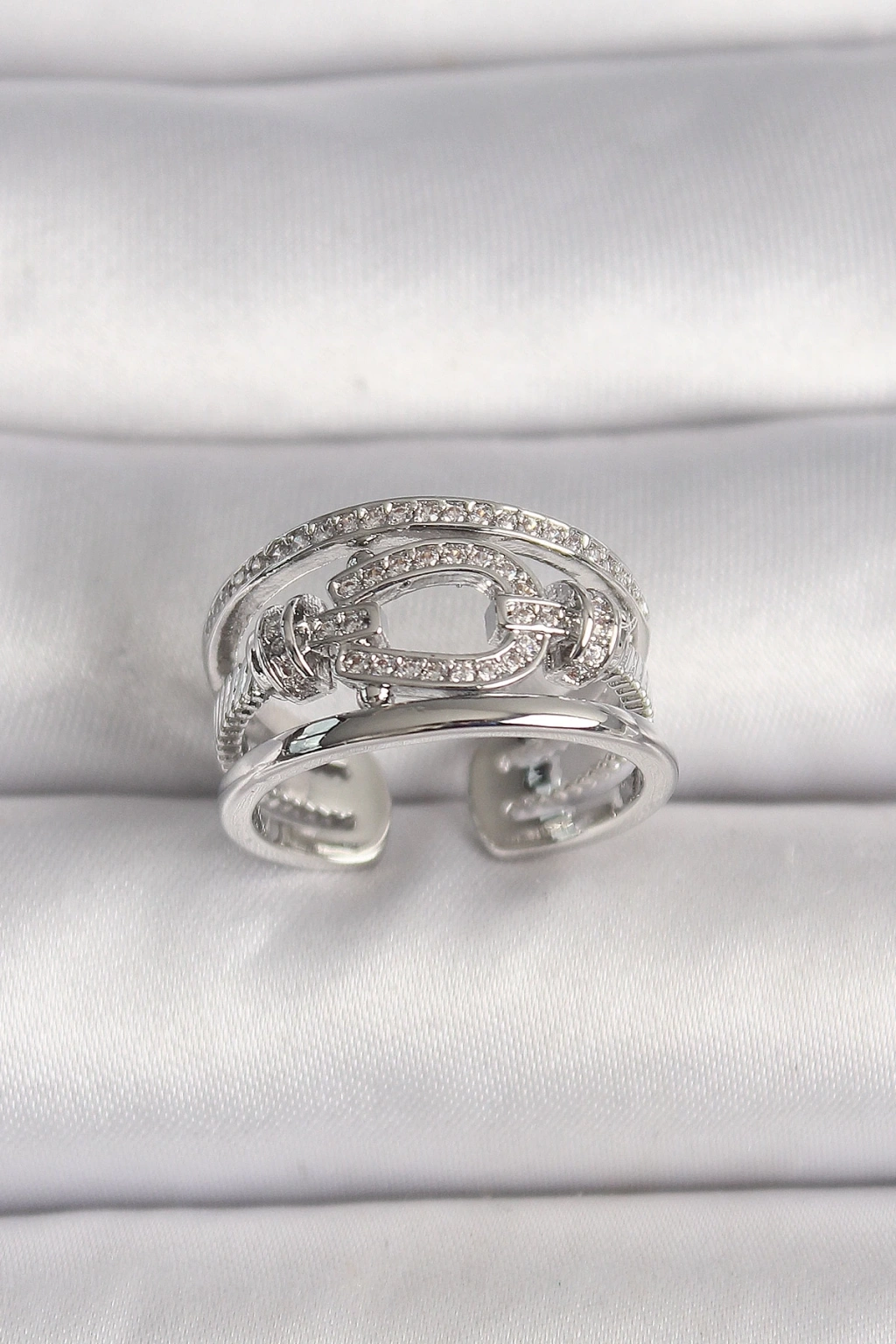 BFS Pirinç Gümüş Renk Ayarlanabilir Zirkon Taşlı Gemici Düğüm Model Kadın Yüzük
