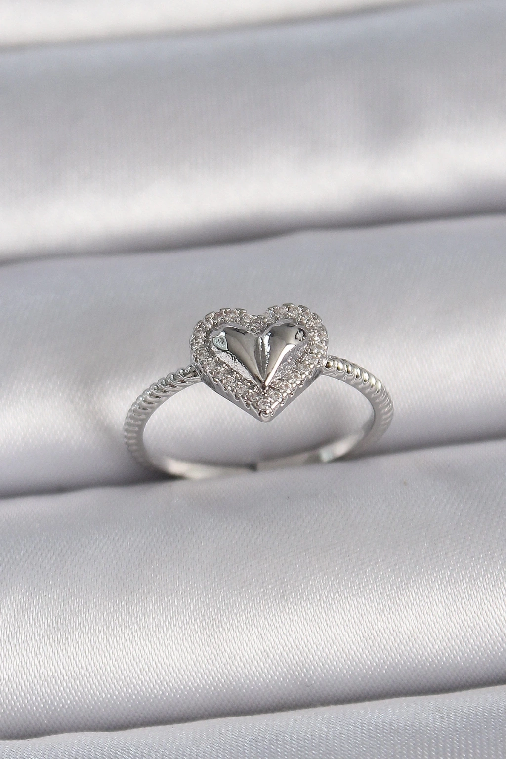 BFS Pirinç Gümüş Renk Ayarlanabilir Zirkon Taşlı Kalp Model Kadın Yüzük