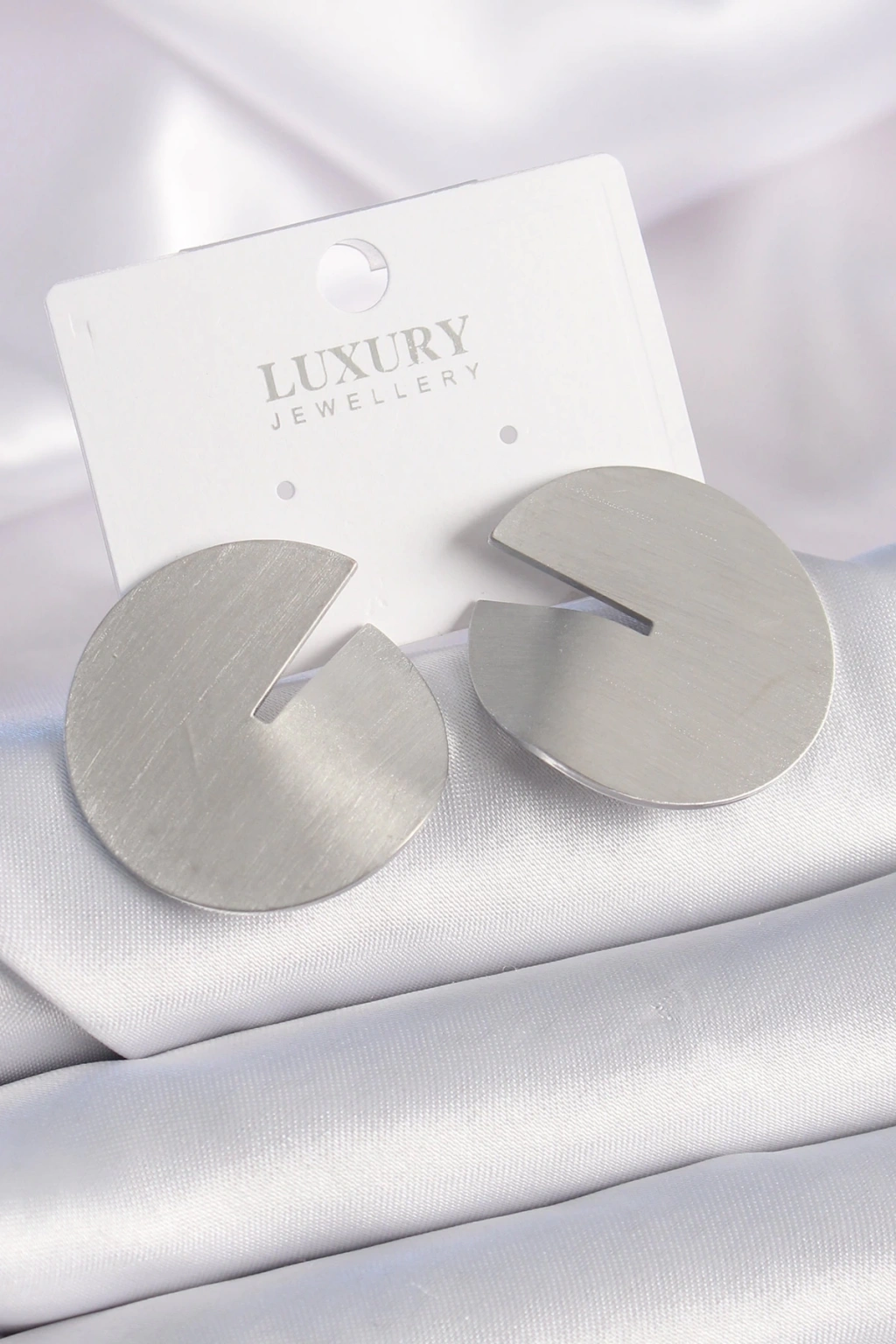 BFS Pirinç Gümüş Renk Daire Plaka Model Kadın Küpe