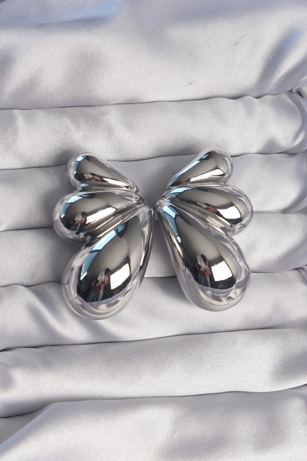 BFS Pirinç Gümüş Renk İri Bombeli Kelebek Küpe