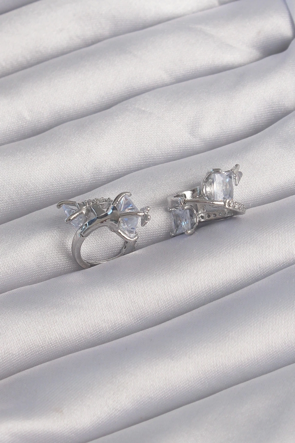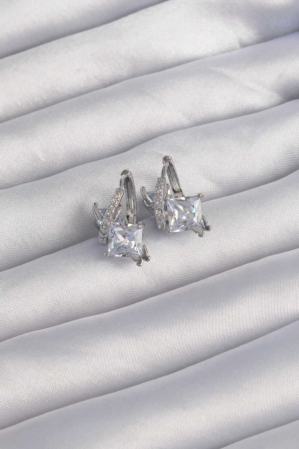 BFS Pirinç Gümüş Renk İri Zirkon Taşlı Kıvrımlı Minimal Kelebekli Halka Küpe