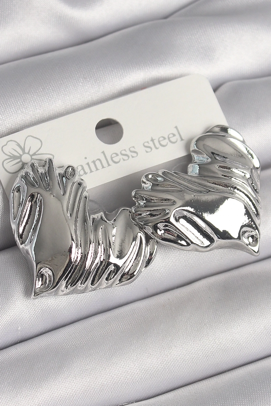 BFS Pirinç Gümüş Renk İşlemeli Kalp Model Kadın Küpe