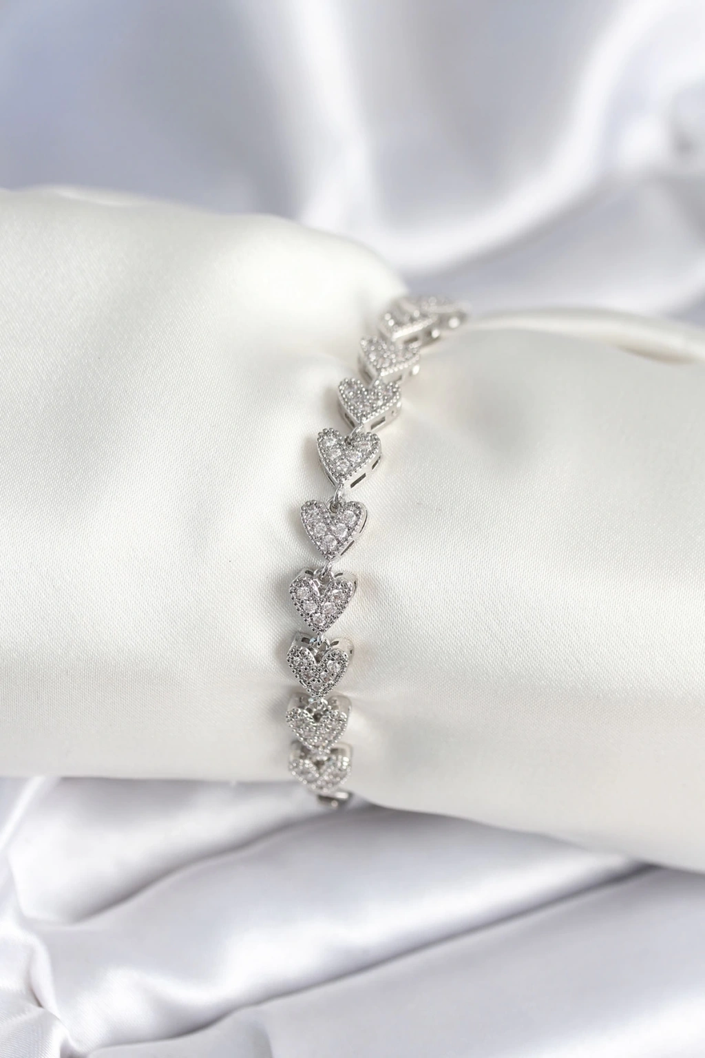 BFS Pirinç Gümüş Renk Kalp Model Kadın Bileklik