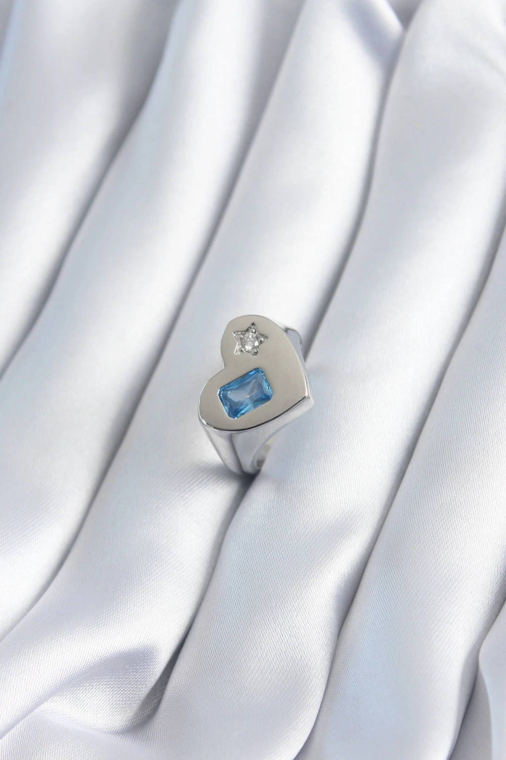 BFS Pirinç Gümüş Renk Kalp Model Yıldız Zirkon Taş Detay Kadın Yüzük