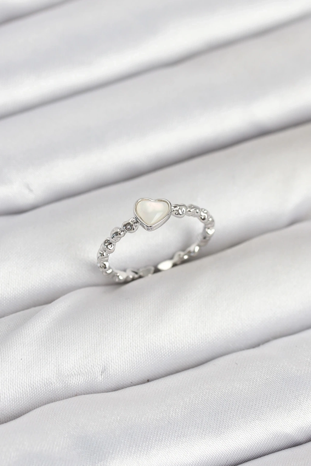 BFS Pirinç Gümüş Renk Kalpli Model Kadın Yüzük