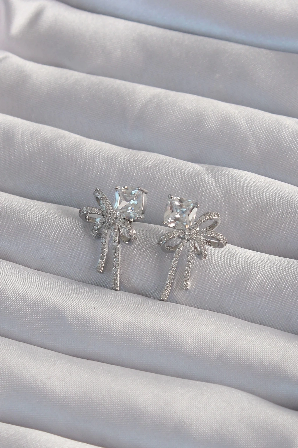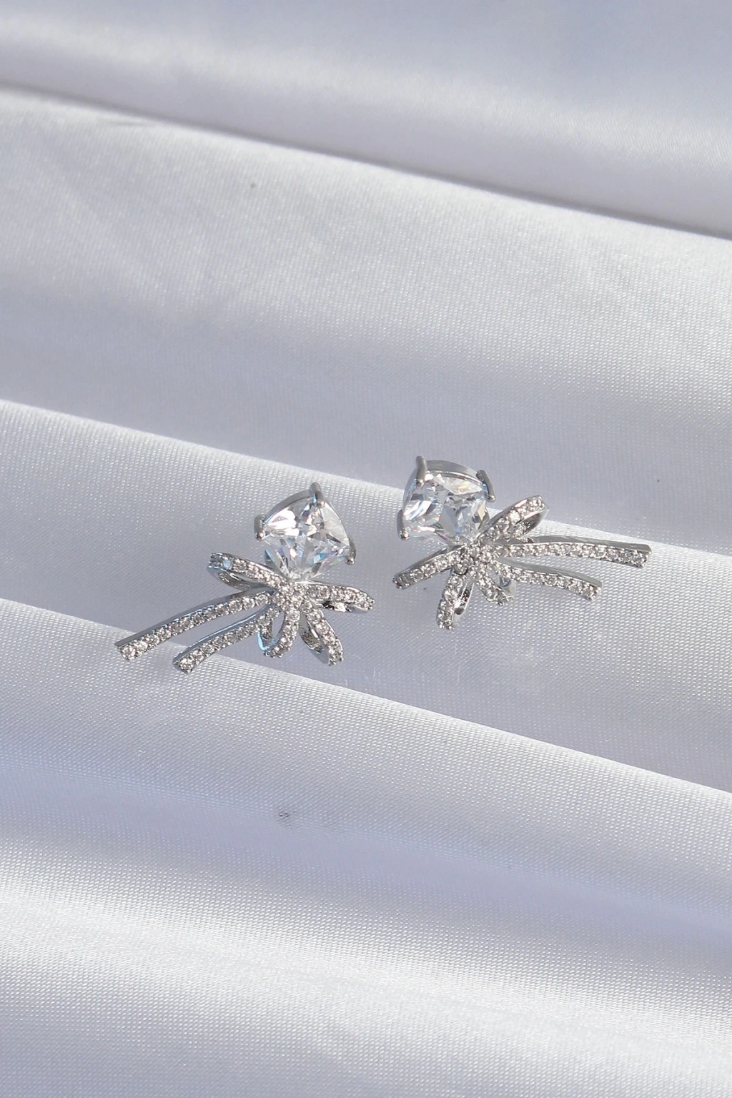 BFS Pirinç Gümüş Renk Kare Zirkon Taşlı Fiyonk Küpe