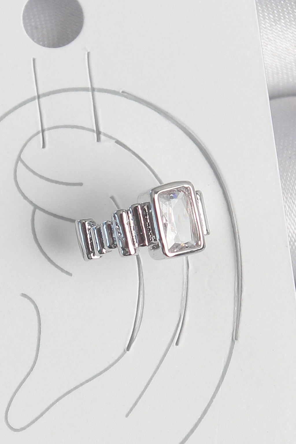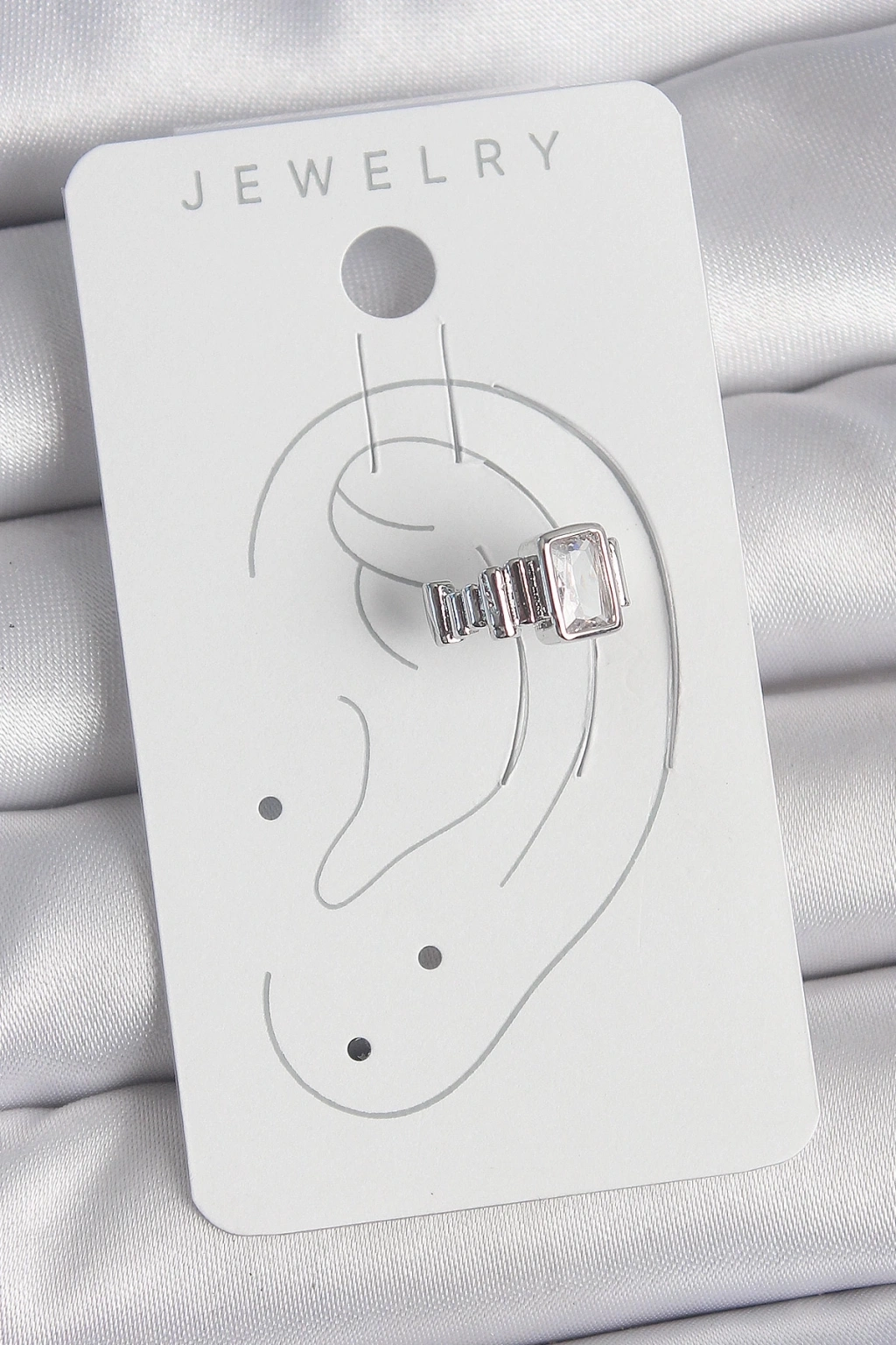 BFS Pirinç Gümüş Renk Kare Zirkon Taşlı Kadın Kıkırdak Model Küpe